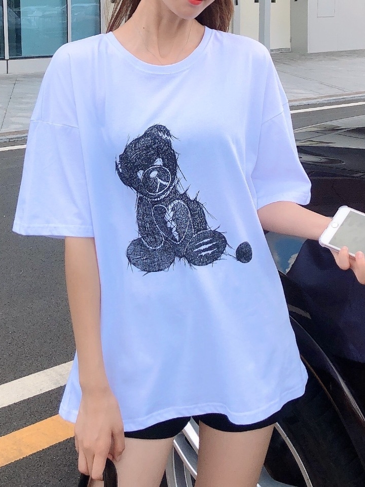 特色t恤,这款是最具有个性的款式,沿袭了经典的黑白主色调的风格,以独具特色的抓痕印花来抓人眼球,鲜活生动,是一款男女通吃的欢迎款式。