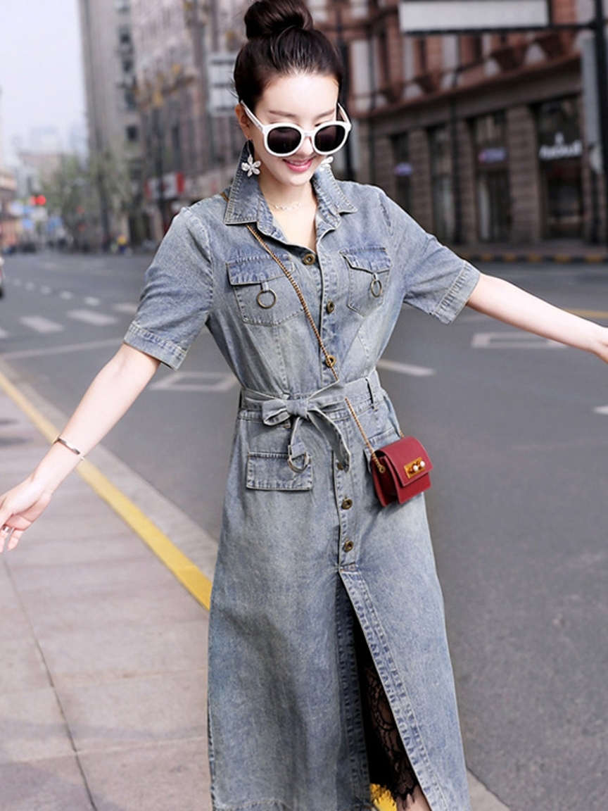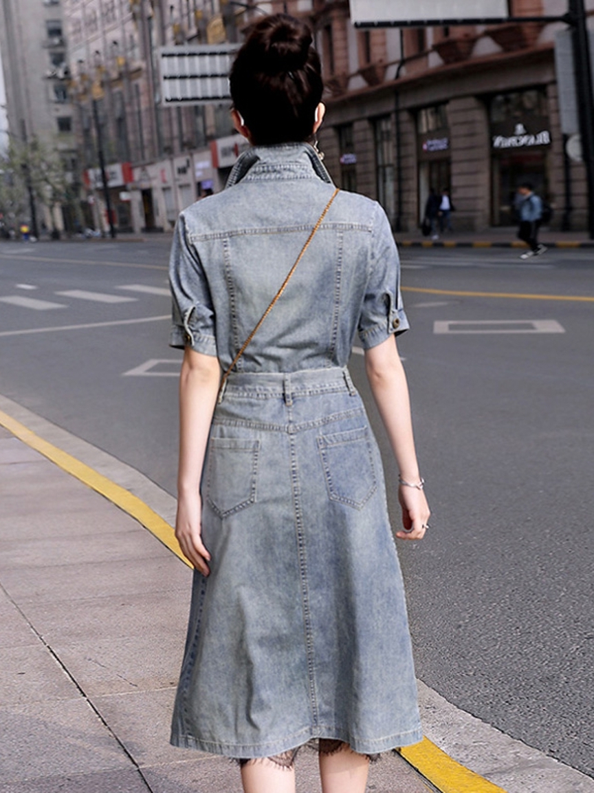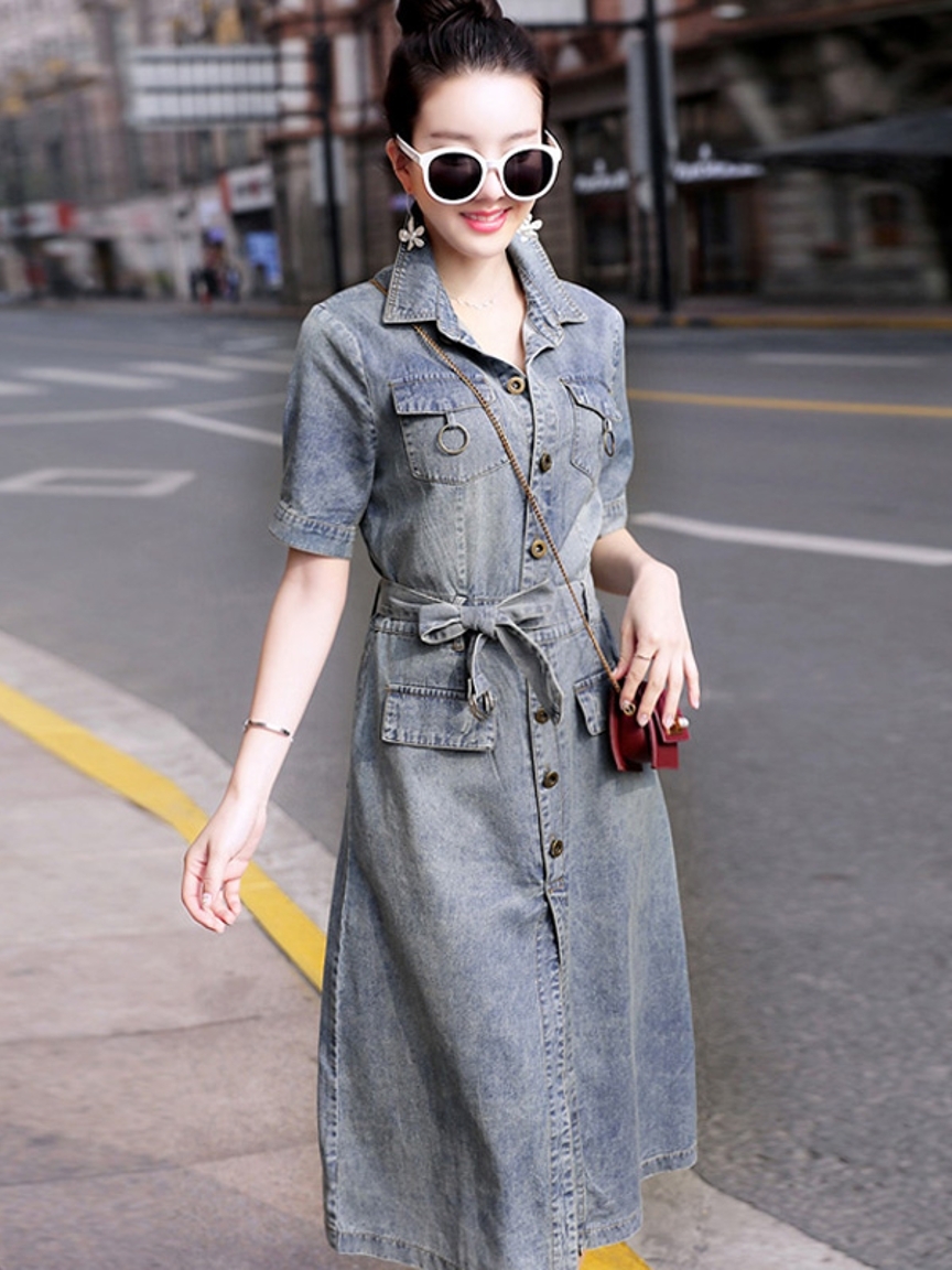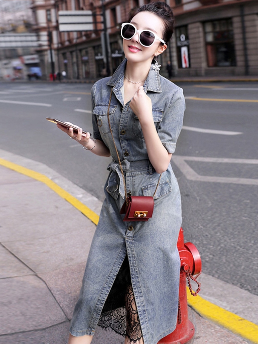 秋装新款衬衫领牛仔连衣裙,卡通贴布绣花减龄青春极具活力,收腰版型极致修饰身材,极具青春活力气息。