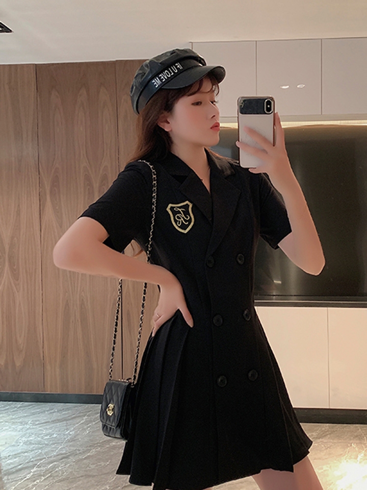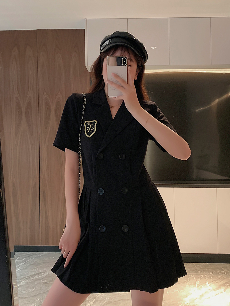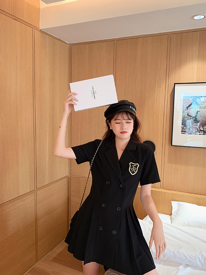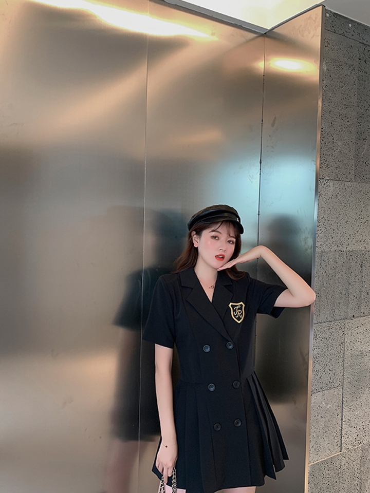 减龄时尚套装,胸前一种刺绣图案,萌感也显得精致可爱配以灵动的A型短裙,活跃富有少女气质,炒鸡减龄的哦。