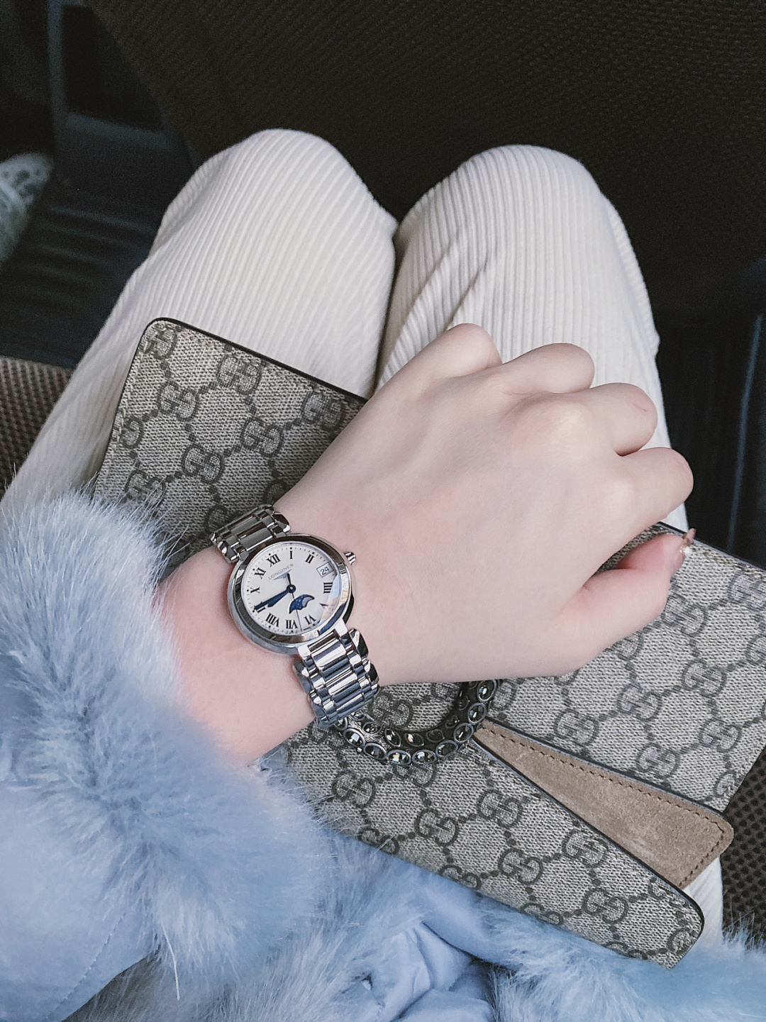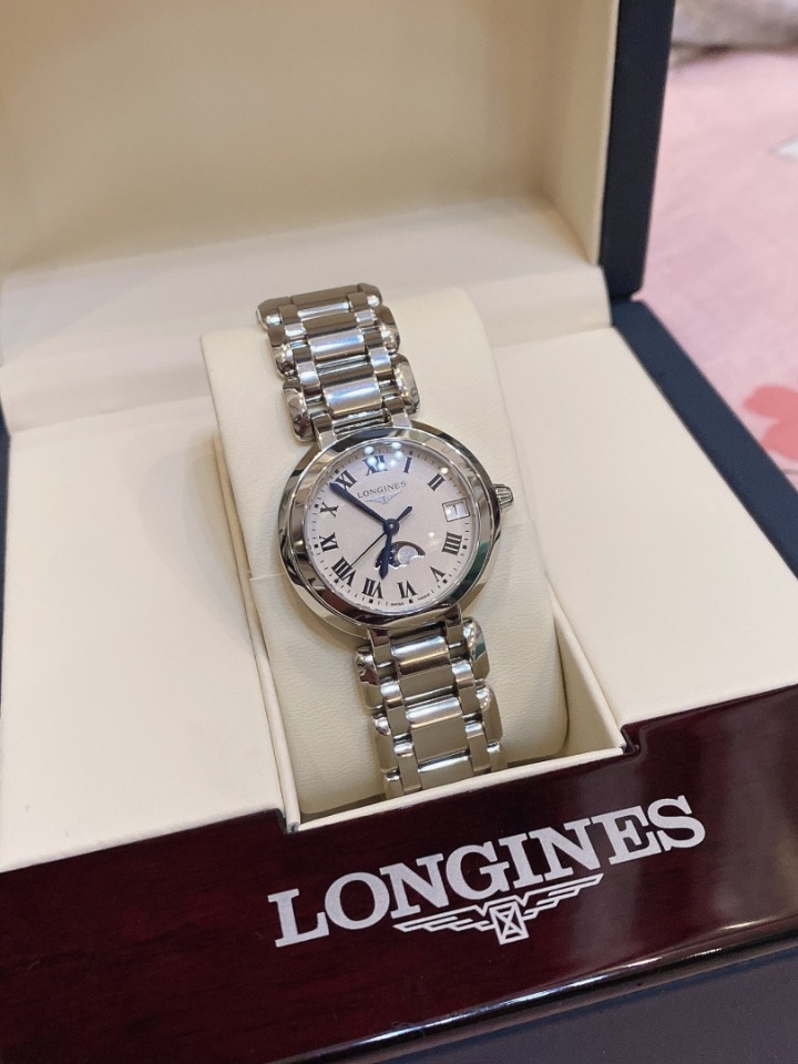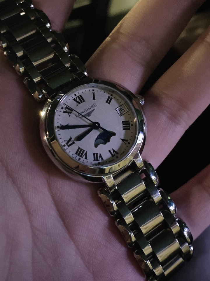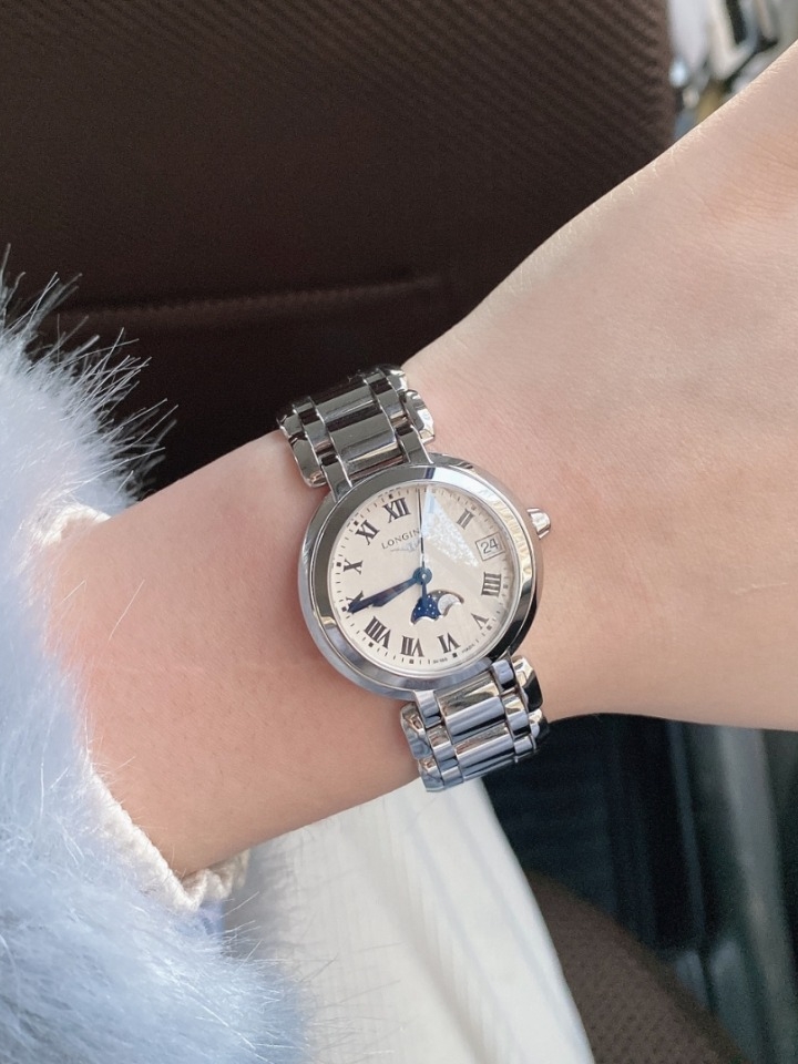 也有带钻的款式,表盘里面是贝母,比较白,但我不喜欢那个哈哈哈~罗马表盘会稍微有点黄黄的,但是超适合我