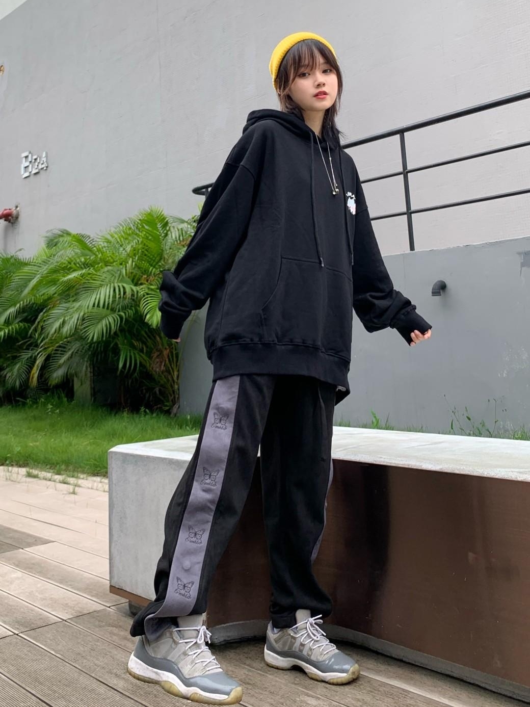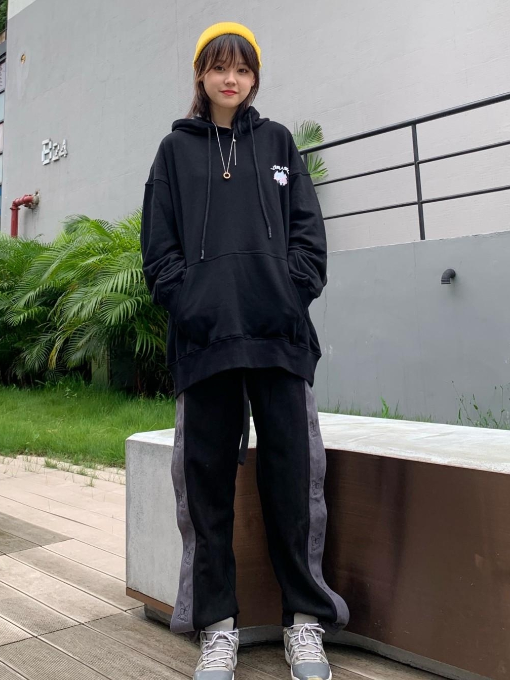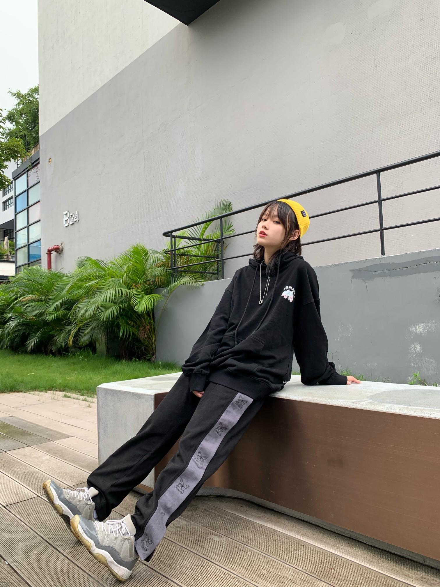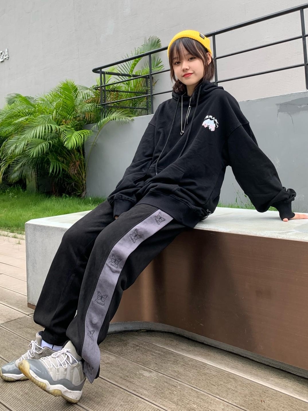 这款活力气息感很强卫衣,搭配上束脚裤,十分魅力。脚上一双经典的帆布鞋作为点缀,彰显出满满的活力青春风情,靓丽迷人。