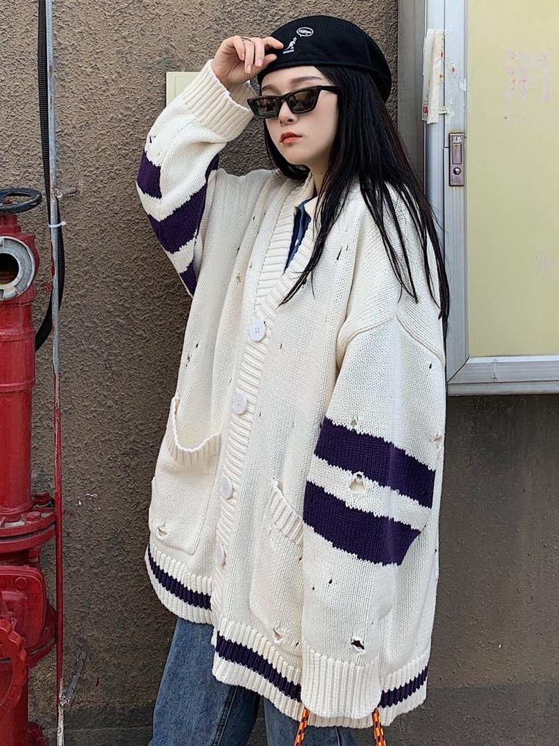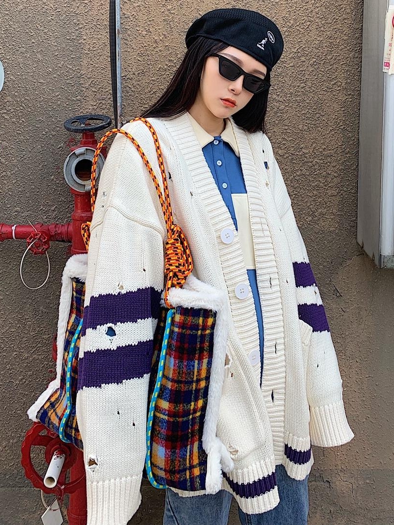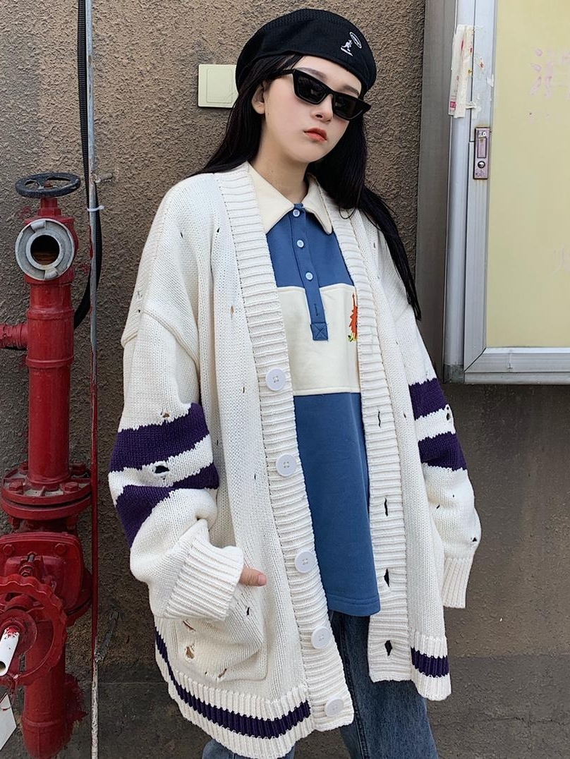 廓形感大纽扣开衫,不张扬的设计,帅气与舒适的随性风,基础简洁V领开衫版型,面料色泽淡雅柔和,打造都市暖男形象 。袖口与衣摆的罗纹破洞增添几分休闲味。