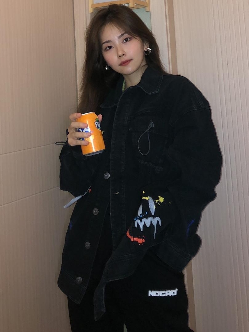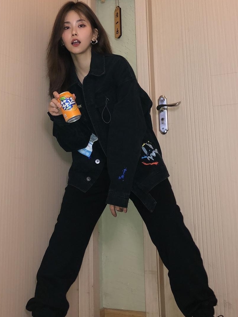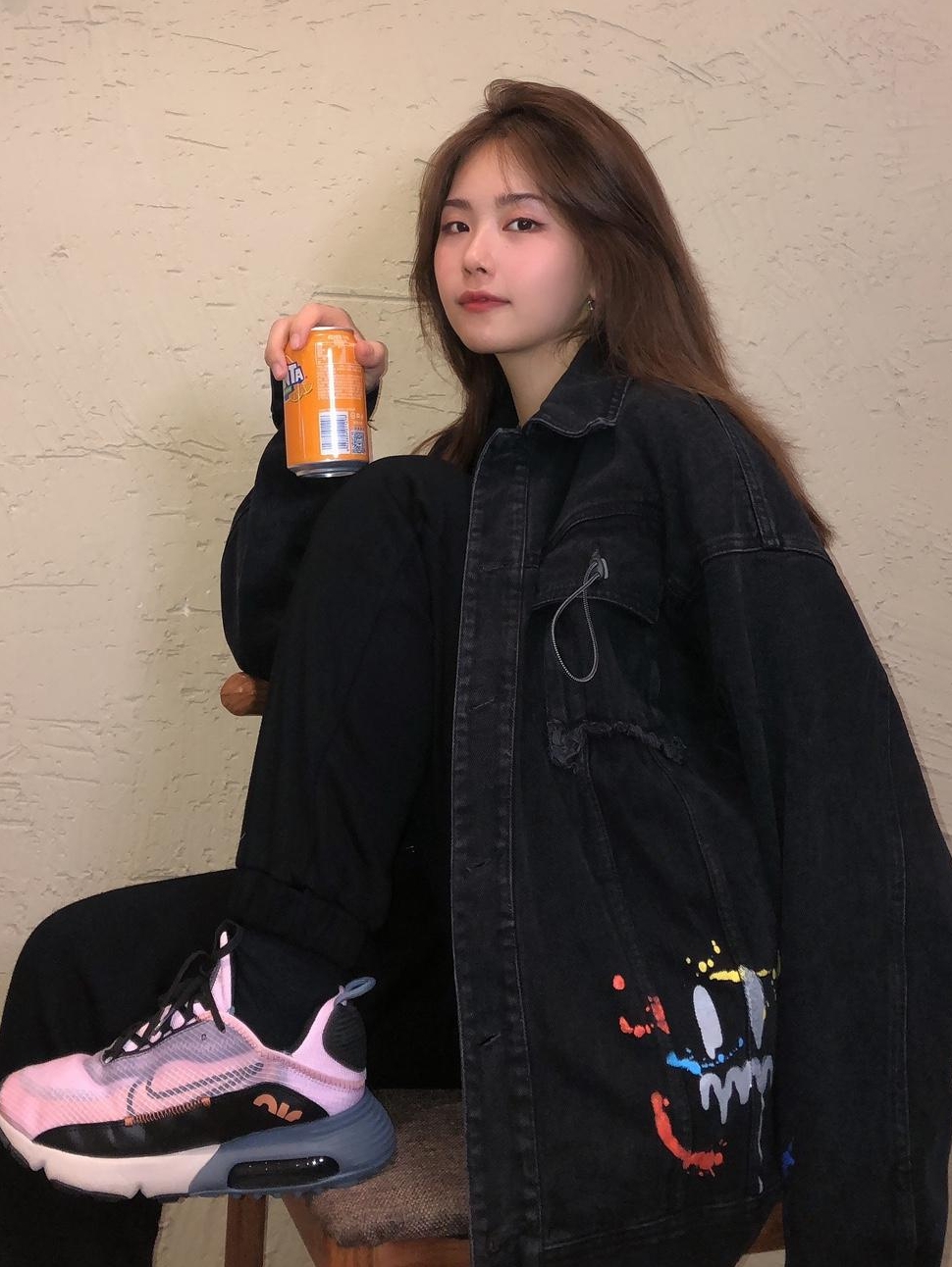 黑色为主的牛仔外套,自带一股复古的风味。宽松的版型,舒适好穿。
