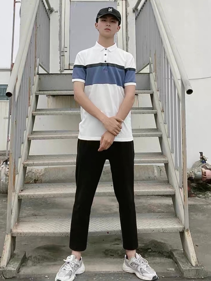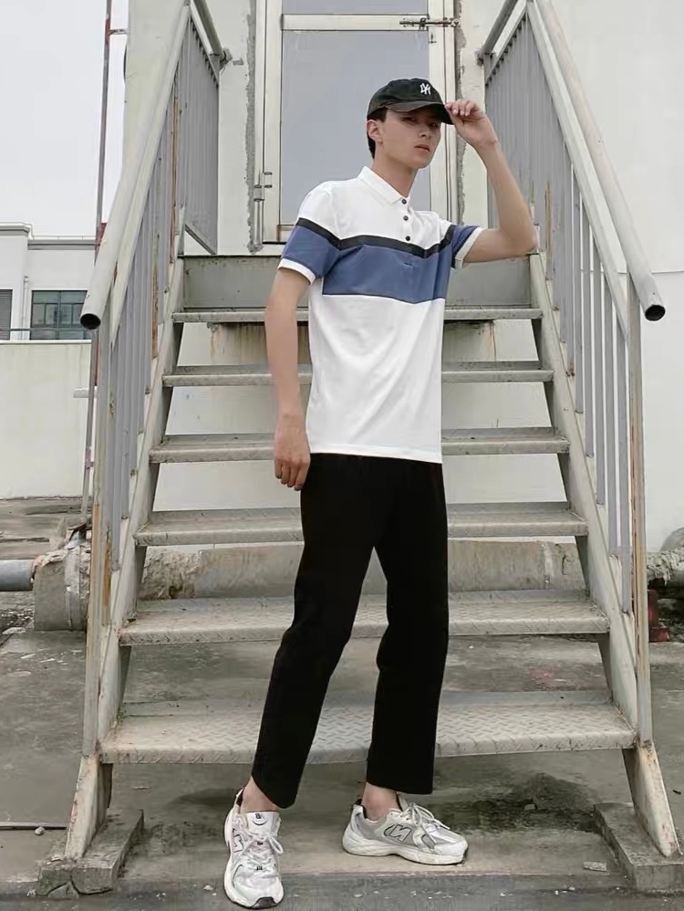 这款男士POLO衫具有成熟商务气息,贴身的版型剪裁,彰显出男士的修长有型的身形,下摆撞色的条纹拼接,以及撞色领口,具有丰富细腻的层次感,彰显出男士的帅气潇洒。