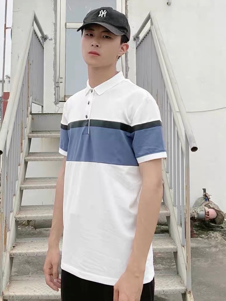 极具富有纹理美感的一款条纹拼接的PoloT恤,大方时尚的立挺的翻领设计,凸显出男士的成熟优雅的绅士气质,多种撞色的拼接设计,营造出强烈的视觉冲击感,极其富有层次感。