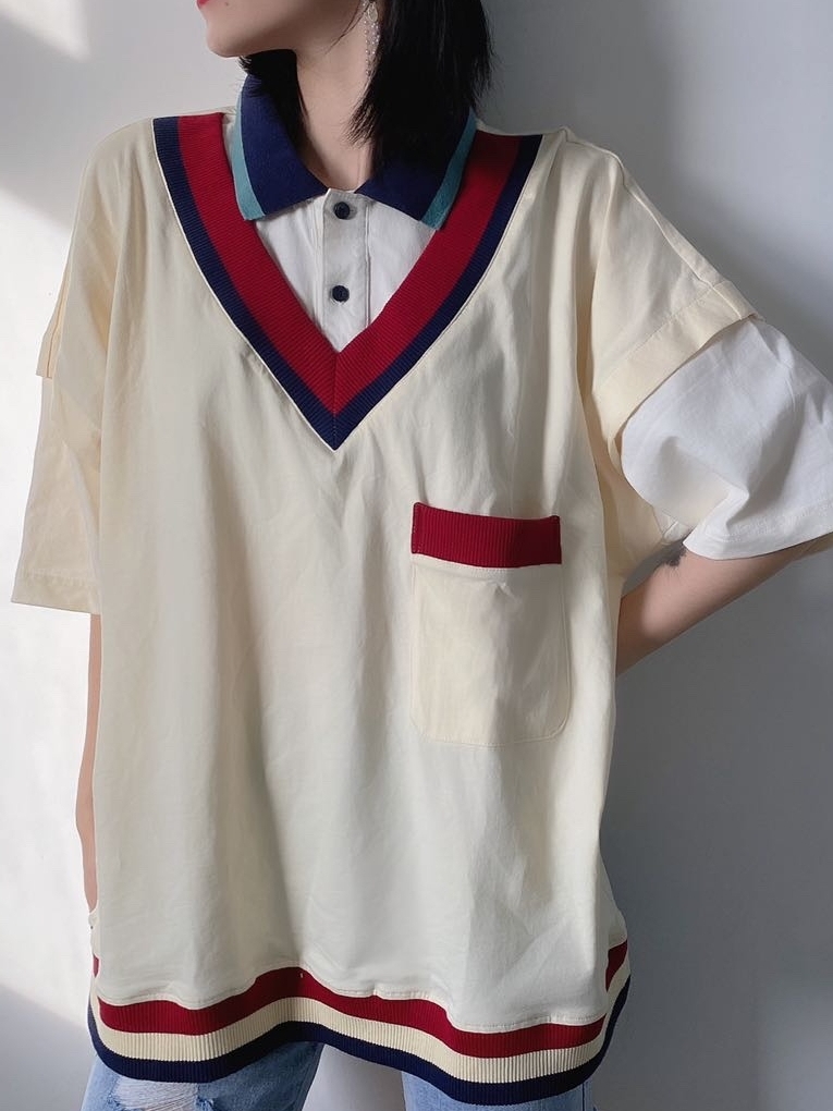 假两件设计,外设马甲,新潮时尚;时尚螺纹拼接V领,凸显男士颈部线条美;外置经典马甲下摆,体现男士魅力;精选布艺纽扣门襟,凸显文艺范。