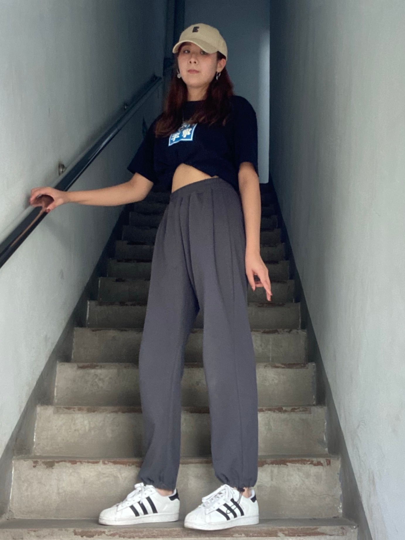 充满魅力的一款运动裤,宽松的版型可以容纳各种不同的腿型,所以它的遮肉效果是不错的。而且它还用了束脚的设计,这样也更具活力感。
