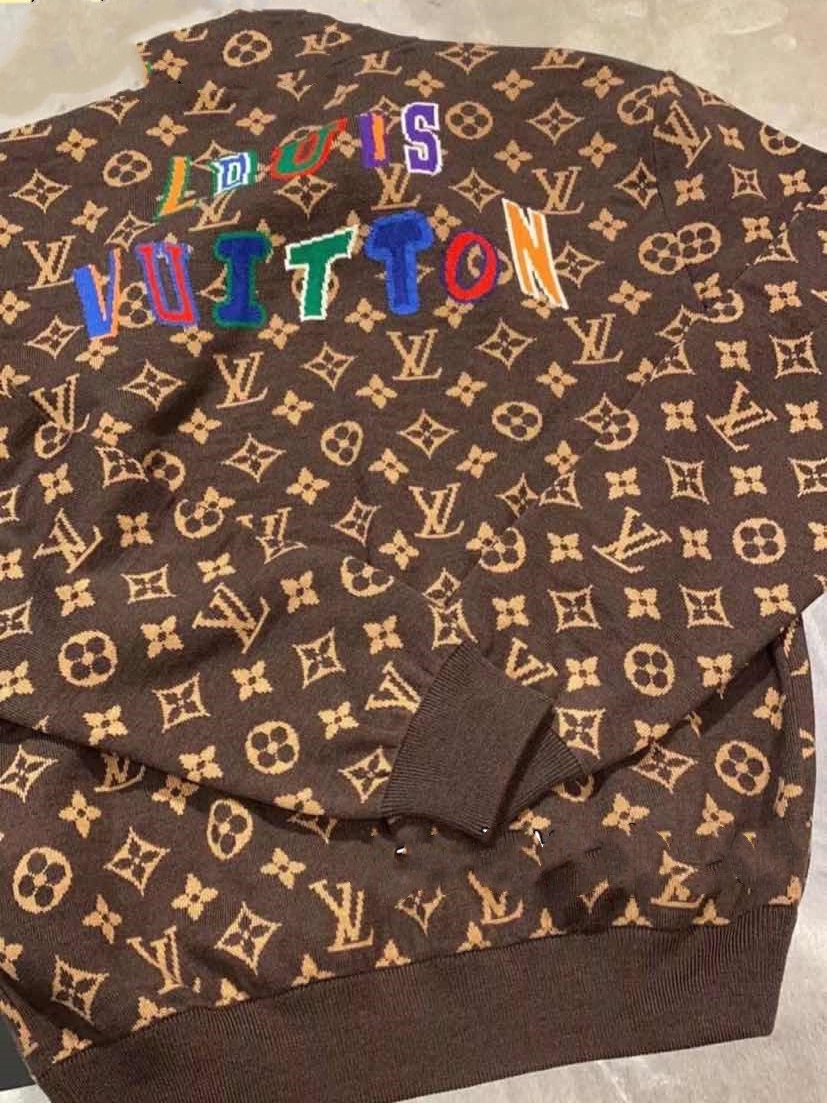 这款LV老花印花的棒球夹克外套,采用的是羊毛材质的,而且还是百分百的羊毛,上身的感觉轻盈又暖和。