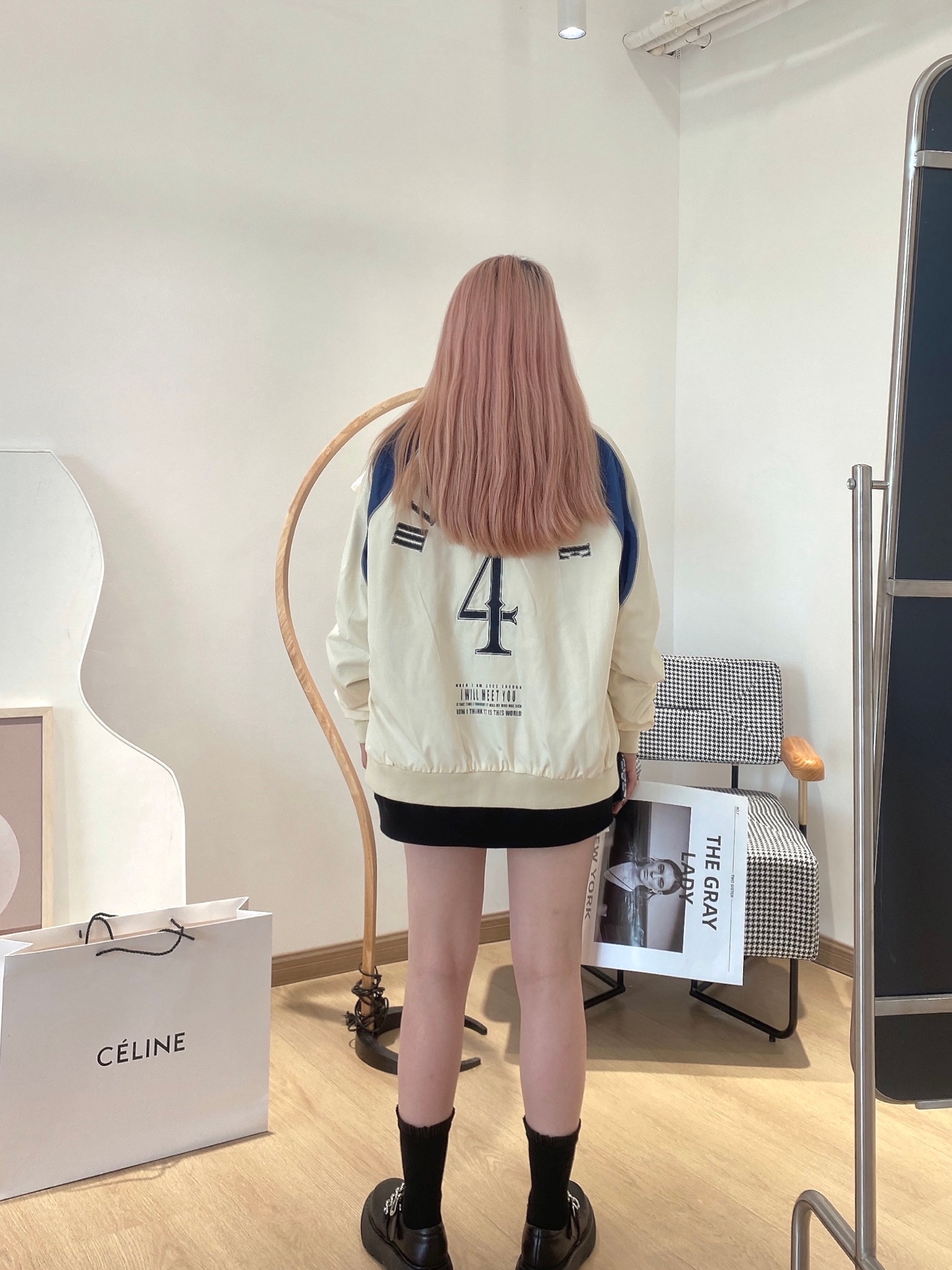 简约的高腰设计,搭配上修身的版型,上身显瘦又显高。