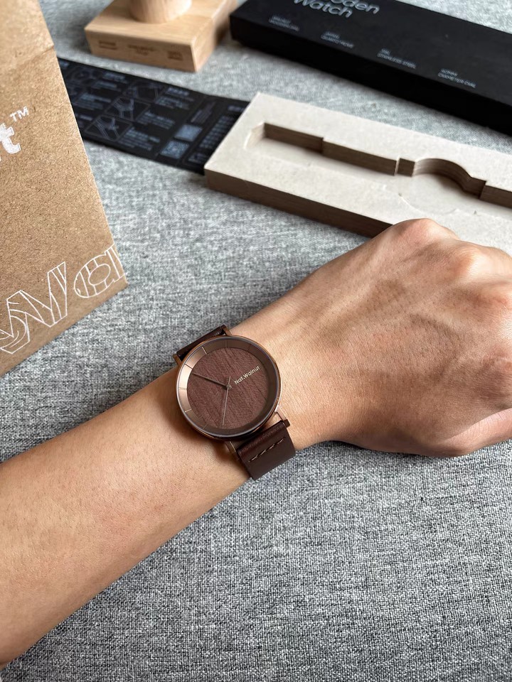 手表有这个颜色的,搭配得太完美了,当时看到这款就感觉很吸引,到手后没有失望,木纹太高级了,而且包装也很用心,大牌的感觉。