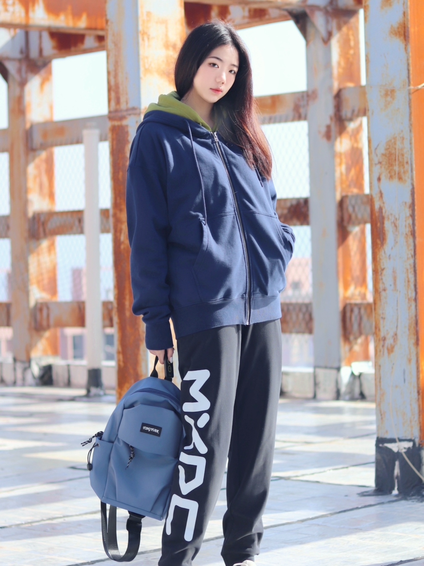 衣身前幅配有Amii字样绣花,彰显品牌格调;温暖舒适的连帽设计似絮絮如梦,富有质感,营造充满个性的运动休闲风;袖口和下摆处拼接软弹的罗纹织布。