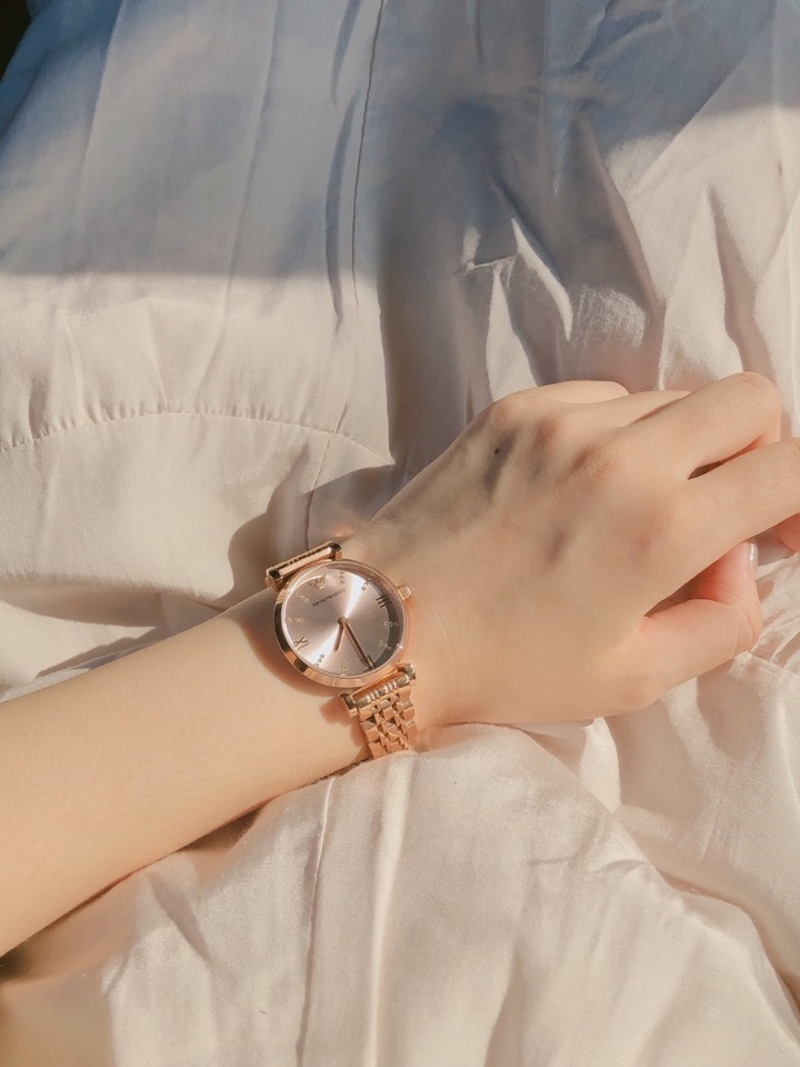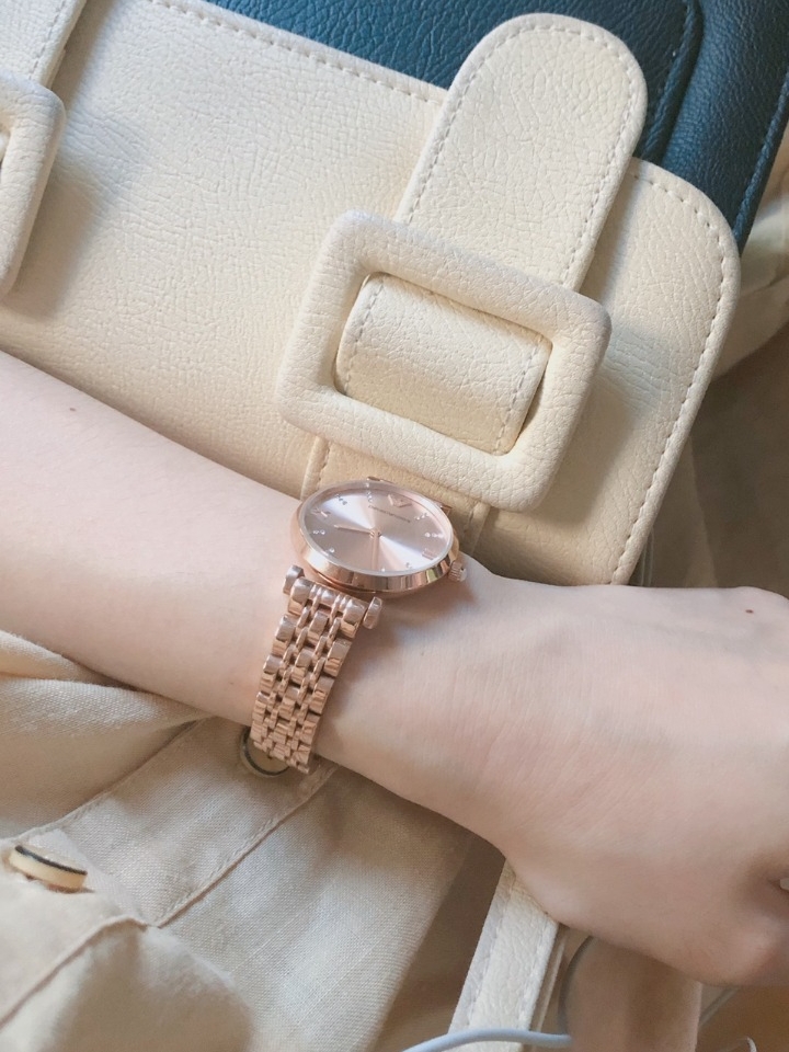 好喜欢这款腕表的颜色啊!它敲显温柔的呢!圆弧形的外圈,典雅大气,又能释放美腻,颗颗锆石镶嵌的刻度,华丽又吸睛。