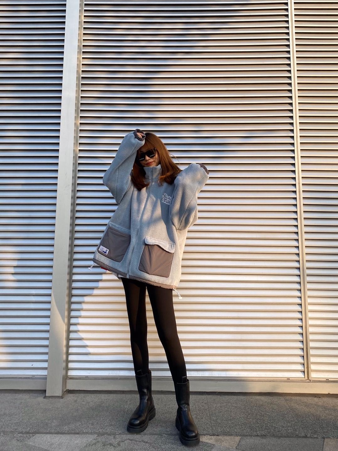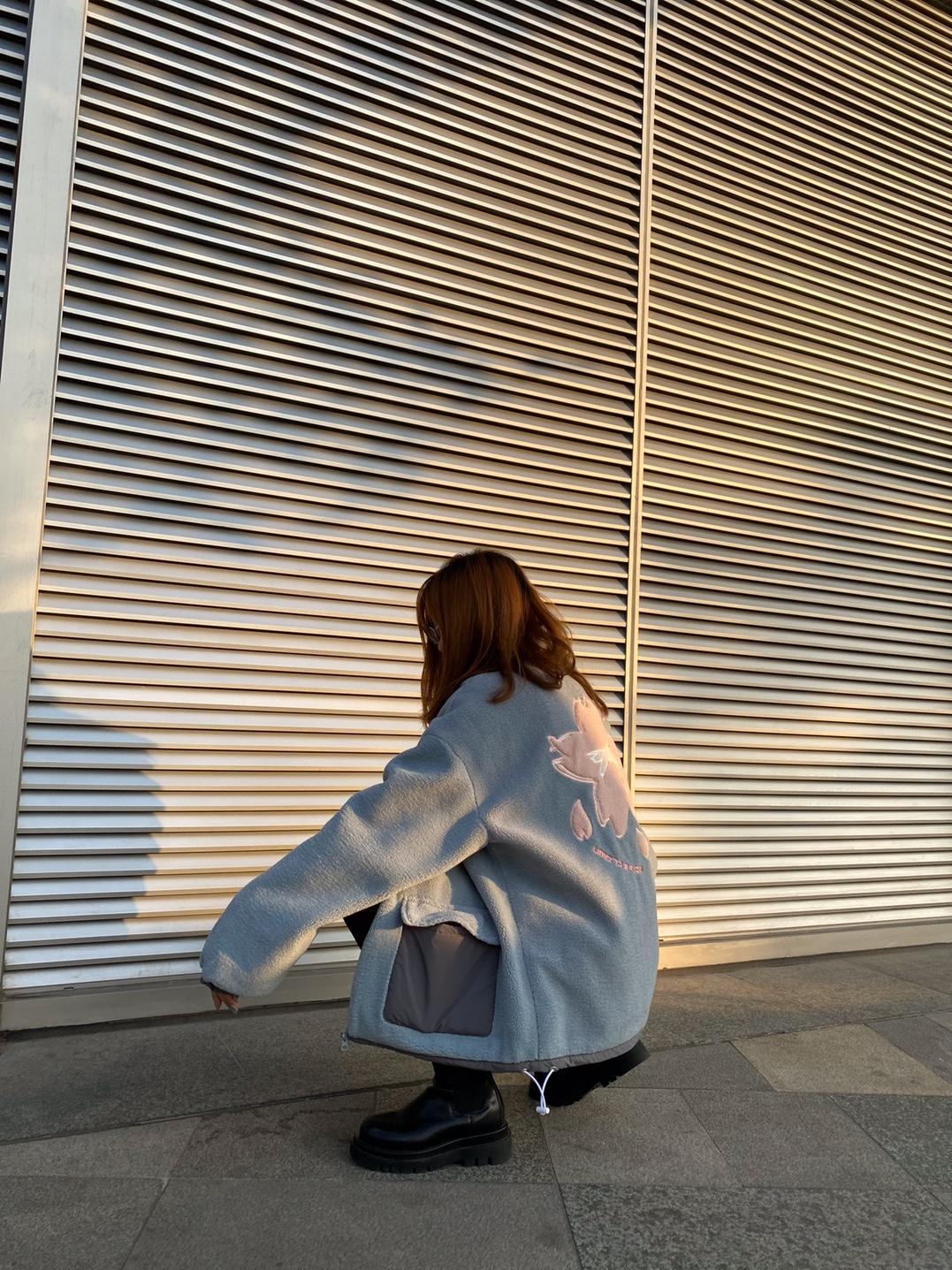 这款羊羔绒外套,小宽松版型上身非常的显瘦,两侧的口袋实用方便。
