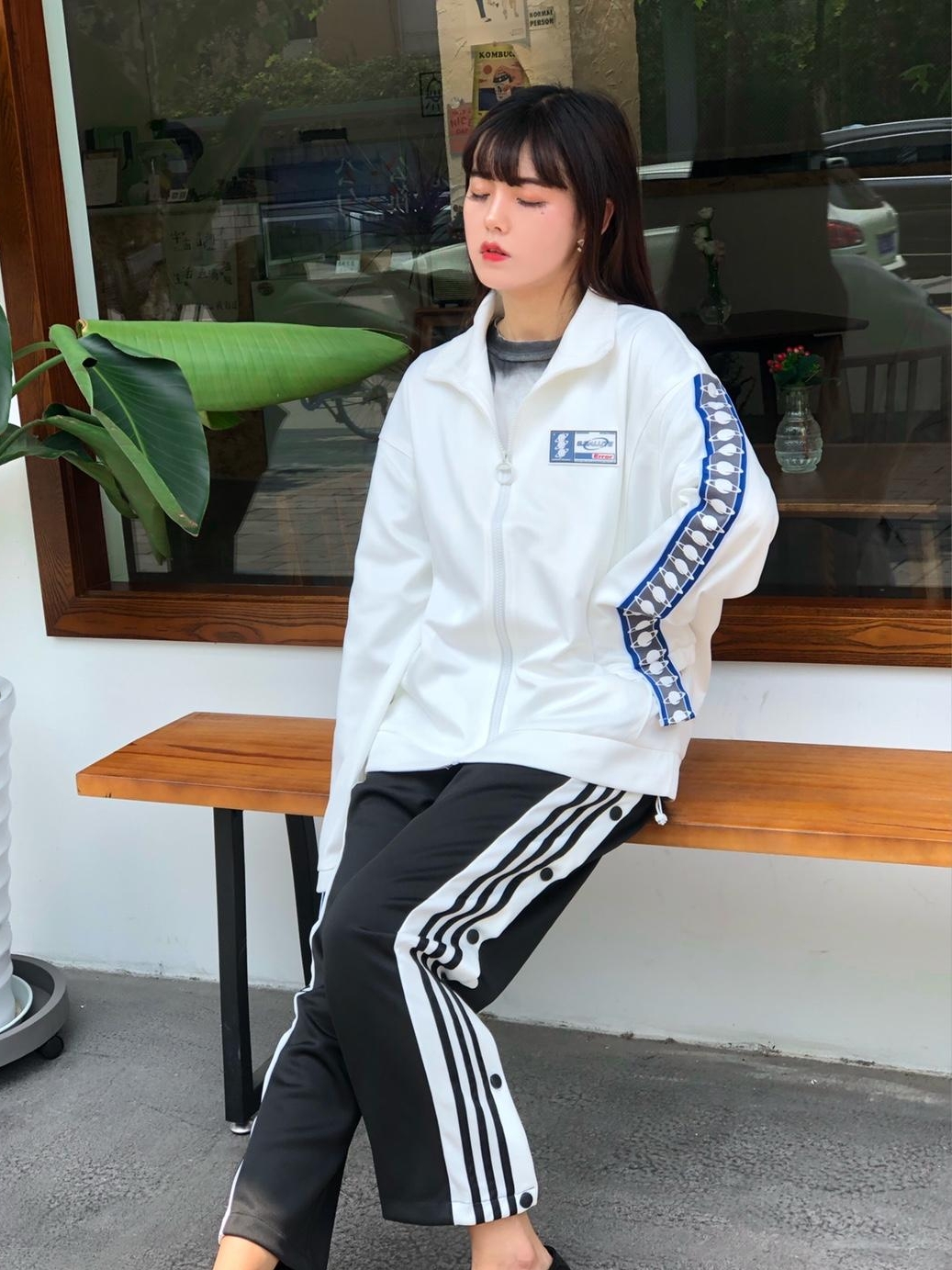 棒球领口设计,干净利落,经典百搭;衣身以白色为基调,融入织带拼接设计,营造视觉亮点,潮味十足;亮眼吸睛的同时更体现���层次感