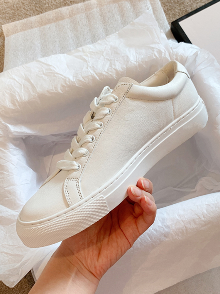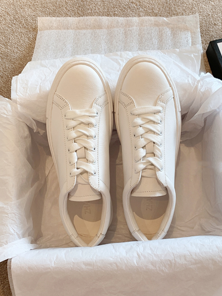 青春感爆表的小白鞋,才是时尚圈经久不俗的存在。皮面的帮面,光泽感很足,耐脏的同时更容易清洗,耐穿率一路上涨。平底鞋底的款式,柔软轻盈,缓解了脚部压力,刷街一整天也不怕累脚。