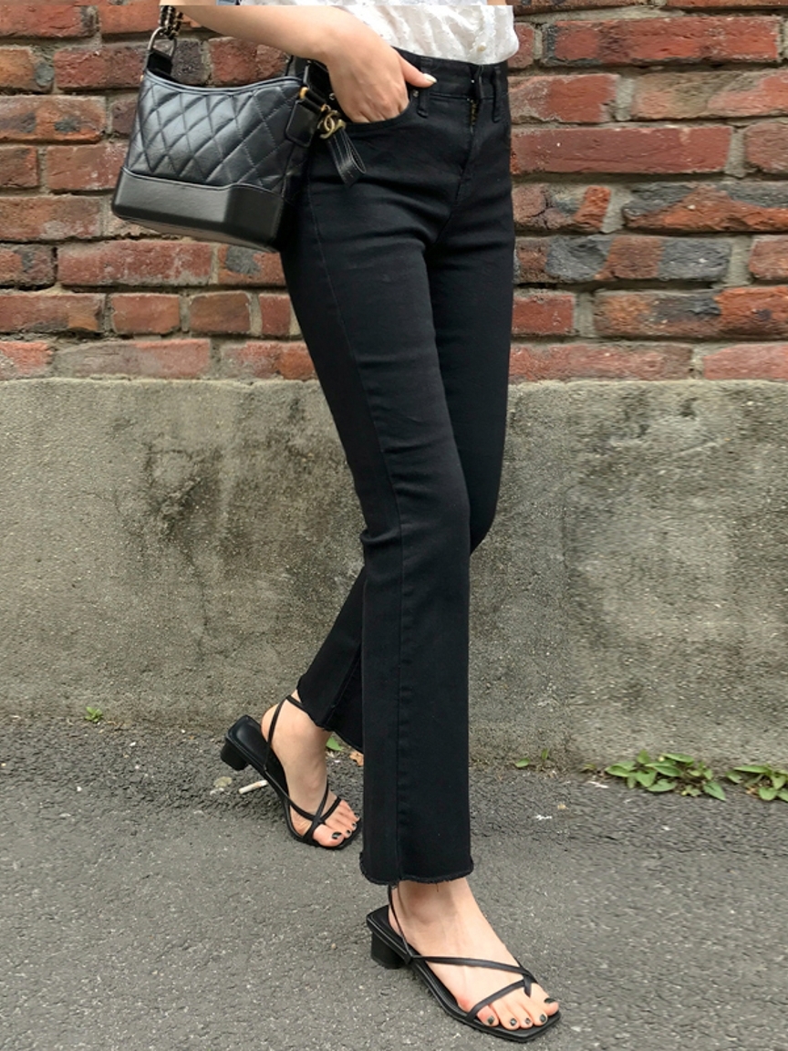 高腰的版型,修身喇叭裤的设计,拉长双腿比例,还把双腿衬得纤细。带点复古的优雅感,适合多种场合。裤脚开叉的设计,气质优雅,性感十足,都是女人的气场。