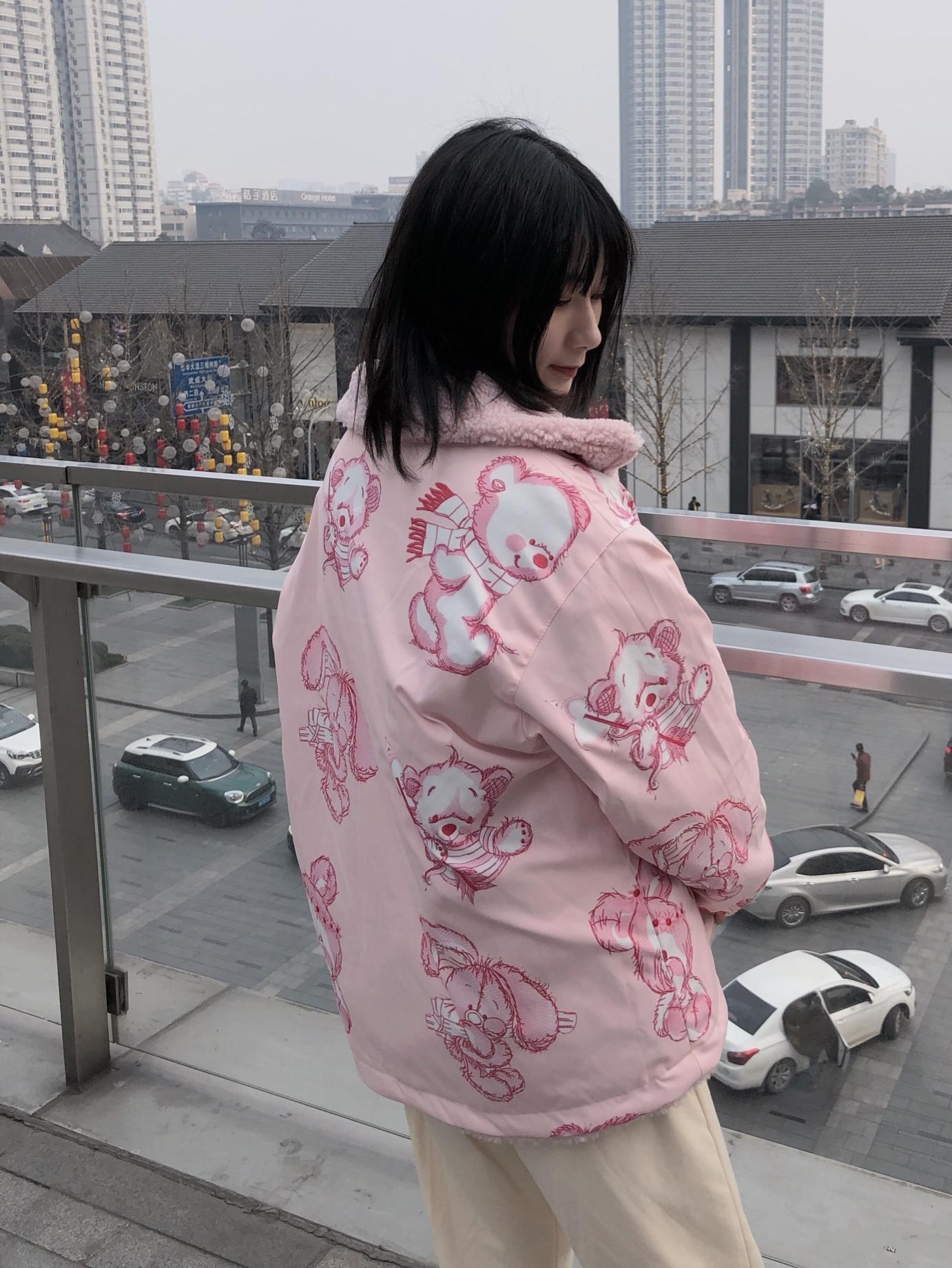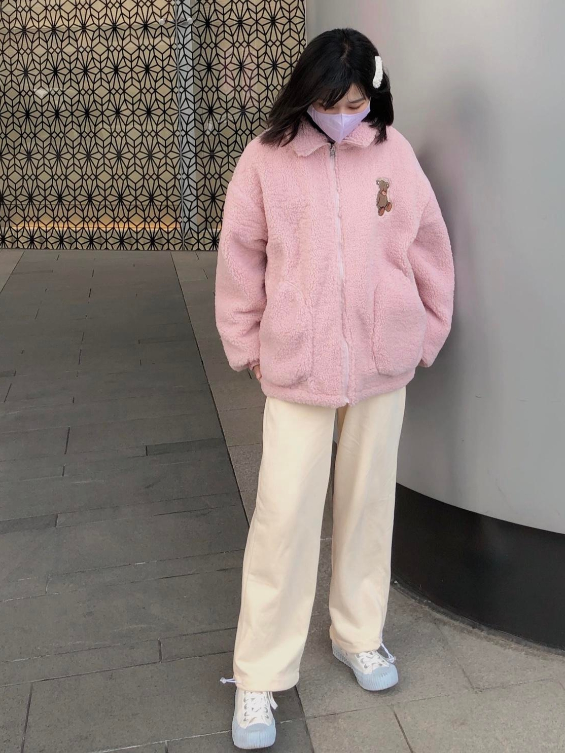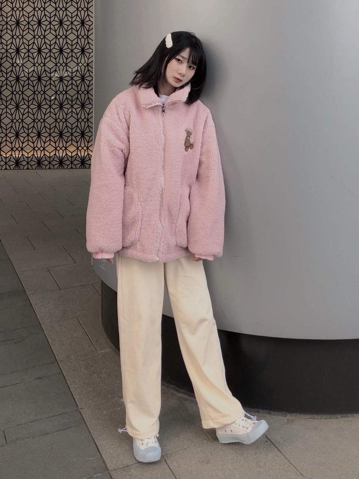 这件外套是根据了卫衣的版型制作,连帽上立体的耳朵垂下十分可爱,羊羔毛柔软的料子内里也有薄绒增加保暖性,重要的是一面穿出卫衣的感觉,拉链前边就是外套的款式,大大增添了实用度。