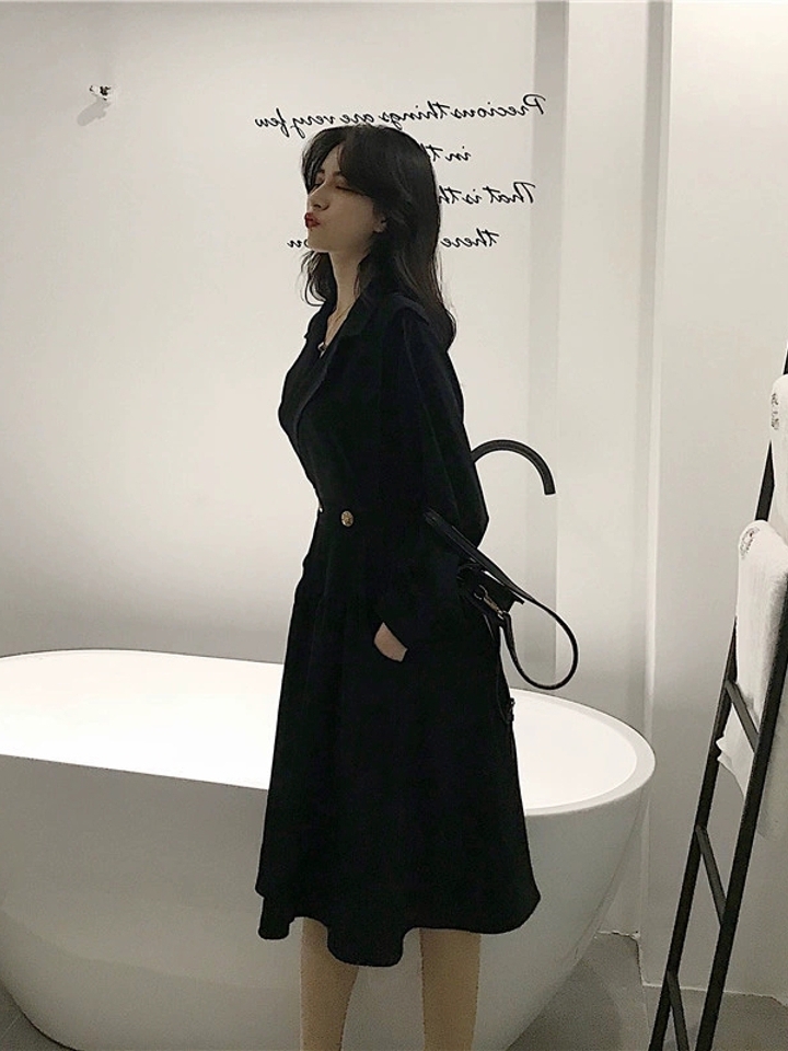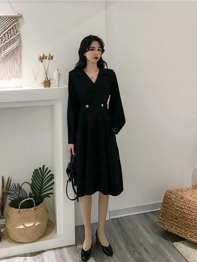 离“穿衣显瘦,脱衣有肉”只差一款有点小猫腻的连衣裙。这款连衣裙可以一衣多穿,内搭外穿都叫它应对自如。面料是条纹复合料,A字下摆更挺括。小立领短脖子星人穿也时髦,上半身是修身设计,但又做了立褶设计,不会让整个人都紧绷绷的。这款我挺看好哦。