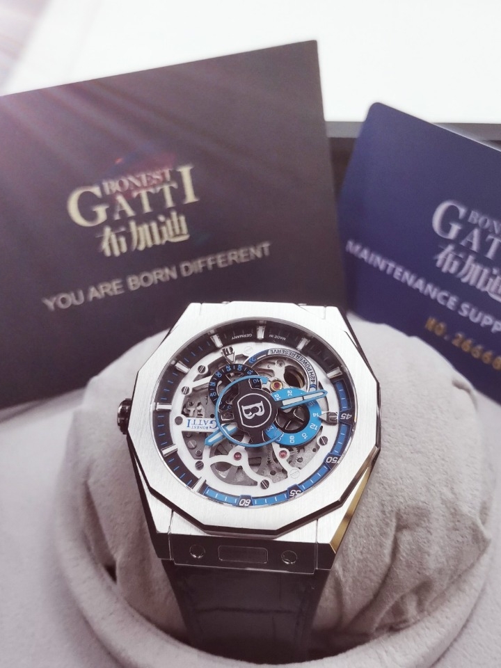 推出了超薄系列机械腕表,厚度仅12mm,贴合手腕的曲线,彰显腕表线条美。盘面镂空设计,让机芯律动之美一览无遗
