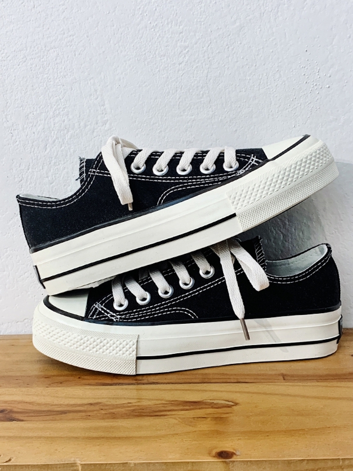 这款匡威常青款低帮帆布鞋,平底略加厚设计,很适合矮小个子的女生,纯色系打造,简约版型,优质内里,带来一股小清新气息。