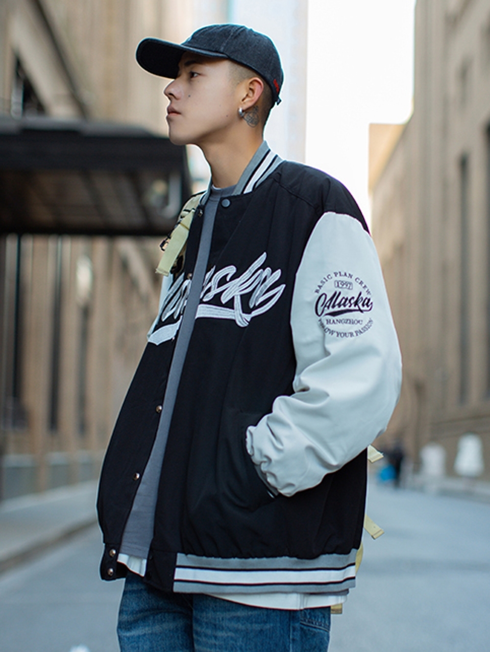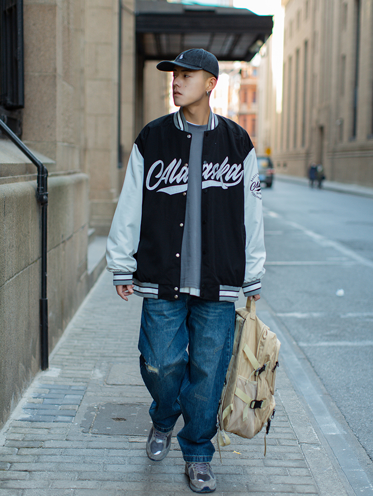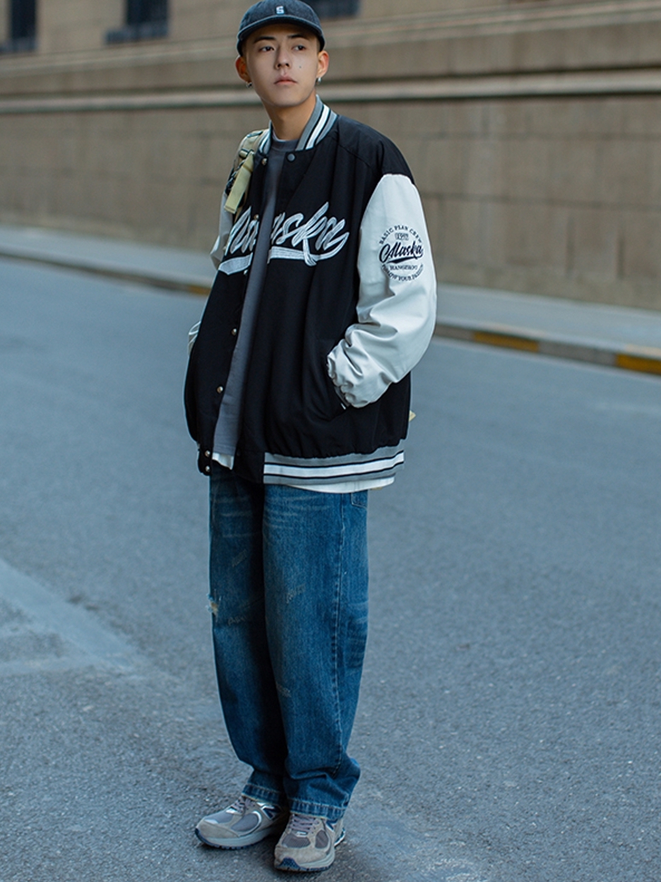 这是很经典的一款棒球服,衣身上的经典拼色,当情侣装也棒棒哒。给女朋友穿了!oversize也别有一番风味。
