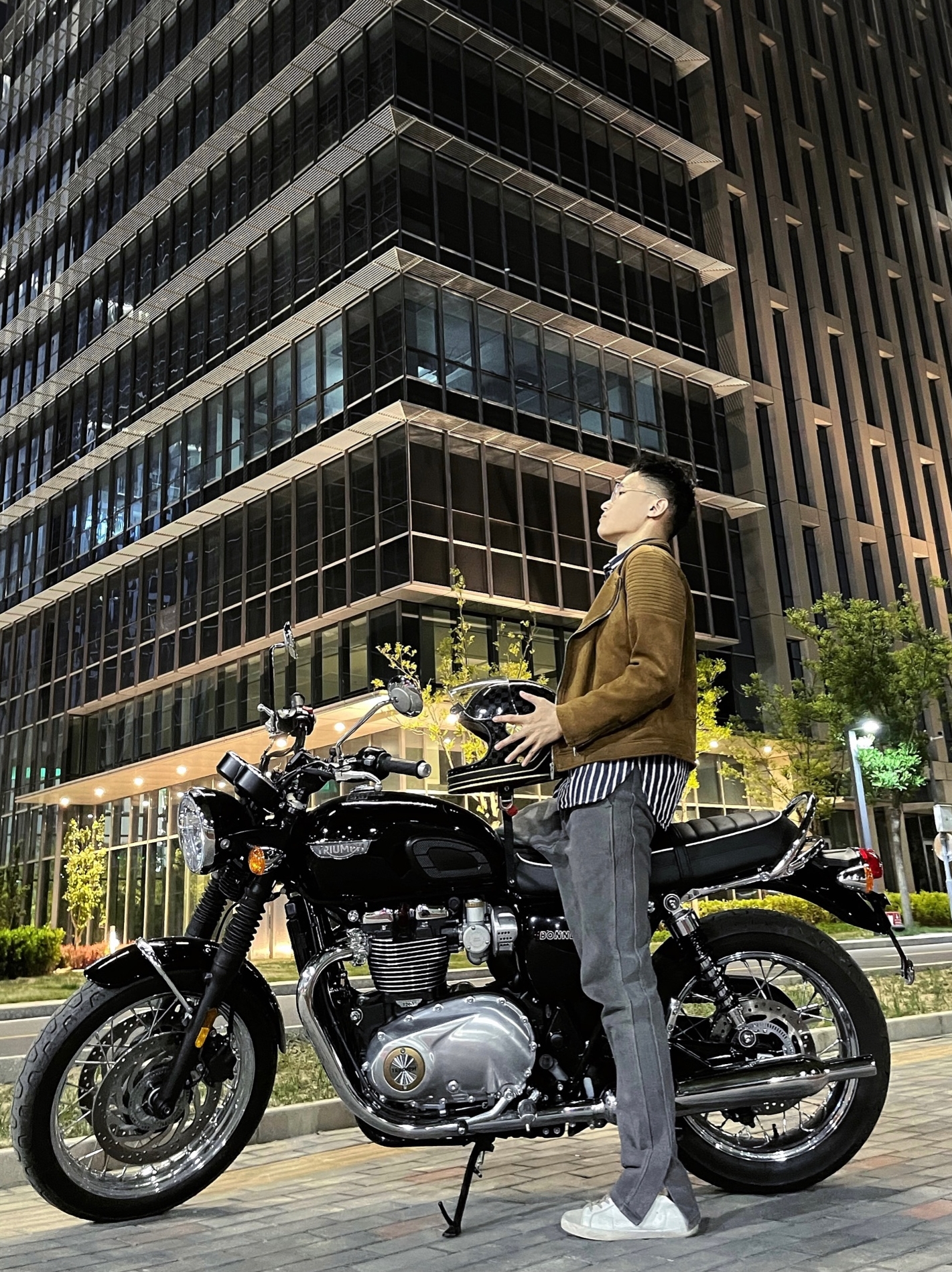 LDQ水洗做旧开叉卫裤,搭配焦糖色短款夹克上衣,强调腰线位置塑造直线型身材比例,不挑身材更有型。