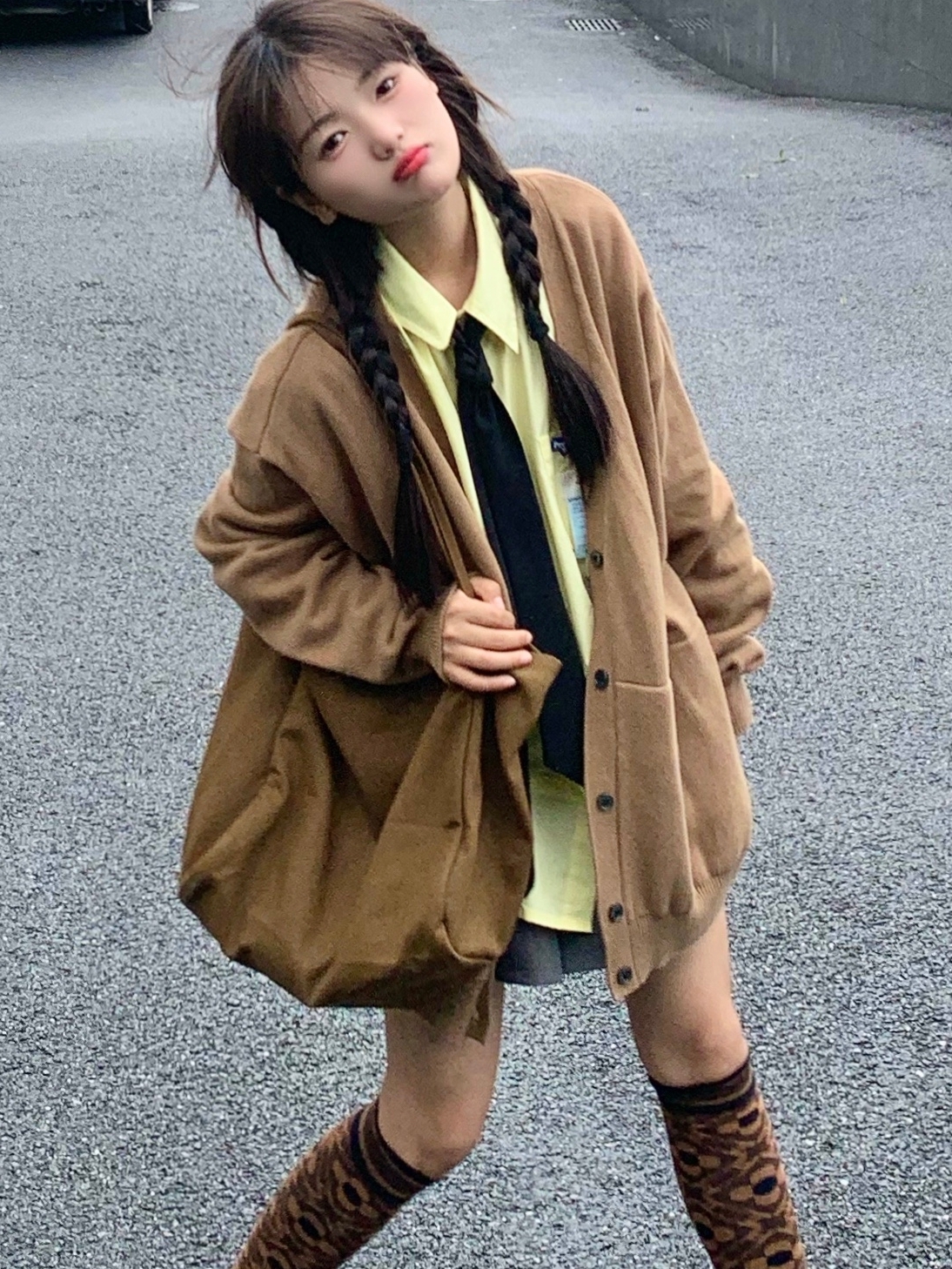 一款小清新调调的针织开衫,V字领拉长视觉效果,轻轻松松达到显瘦目的,可以内搭清爽的白色衬衫,打造简约又具个性的慵懒风。