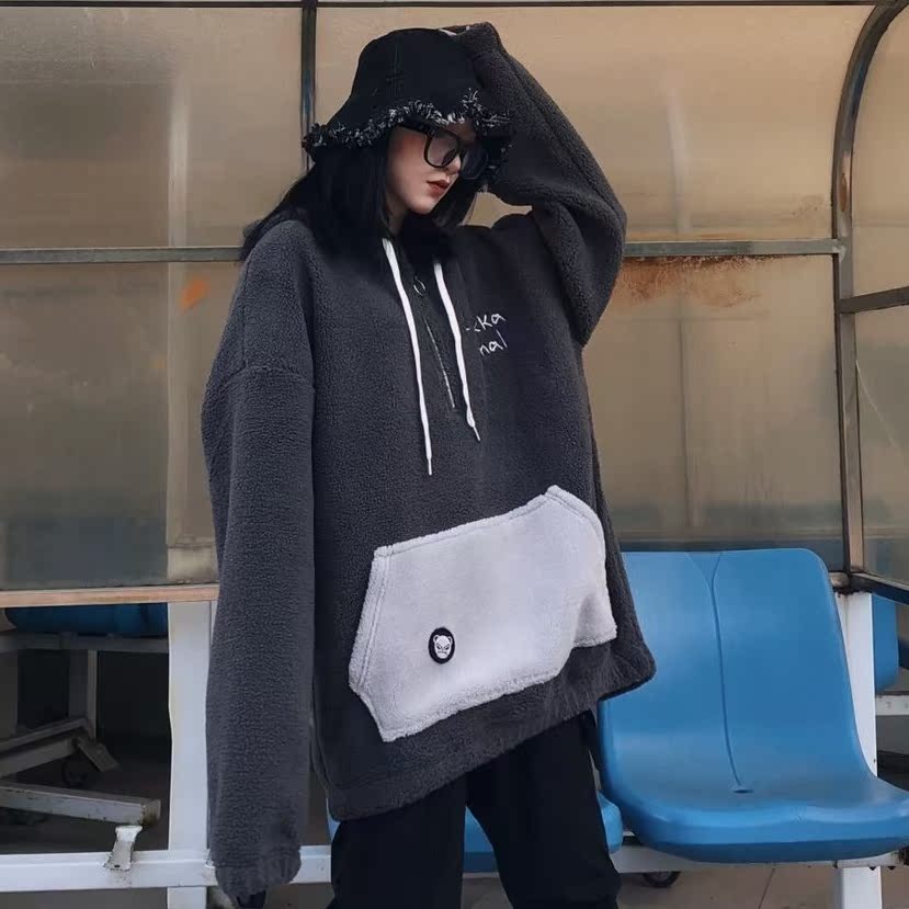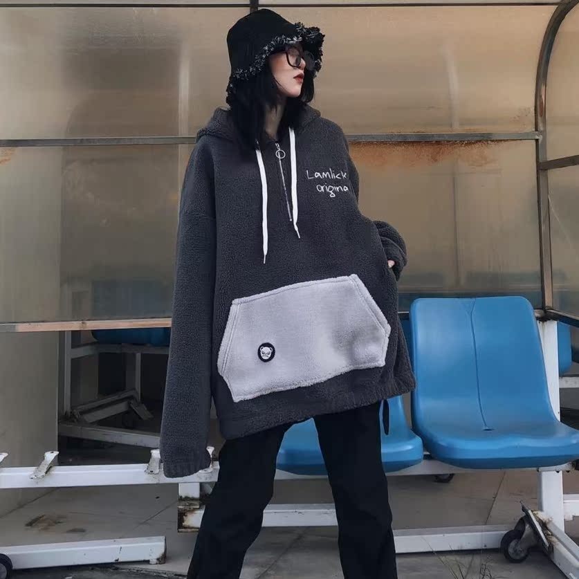此款羊羔毛卫衣采用了微微宽松的款式制作,在背后加入了新潮个性的小恶魔图案刺绣装饰,极具个性,更具街头潮人魅力和潮流感,整体呈现街头风。