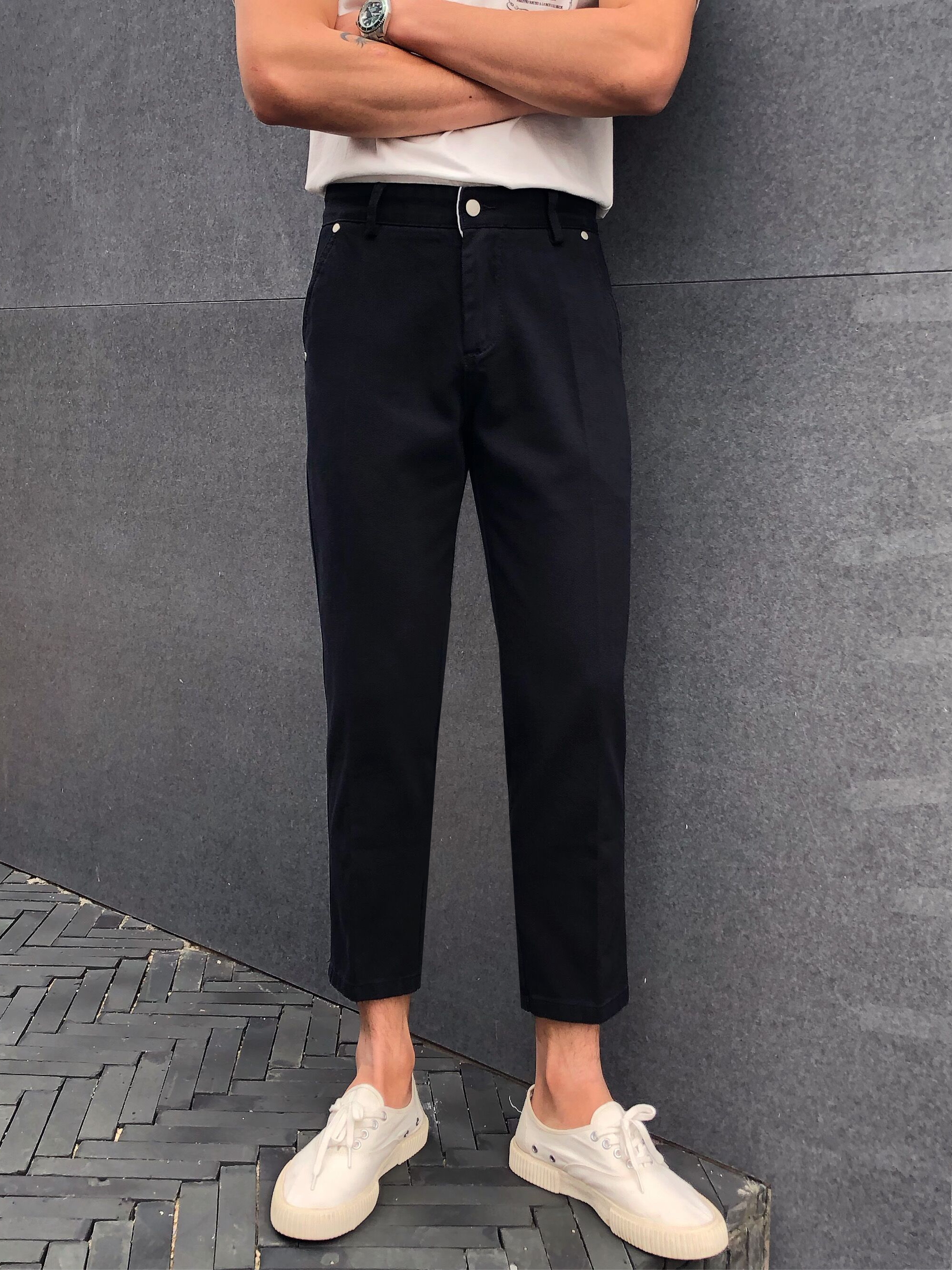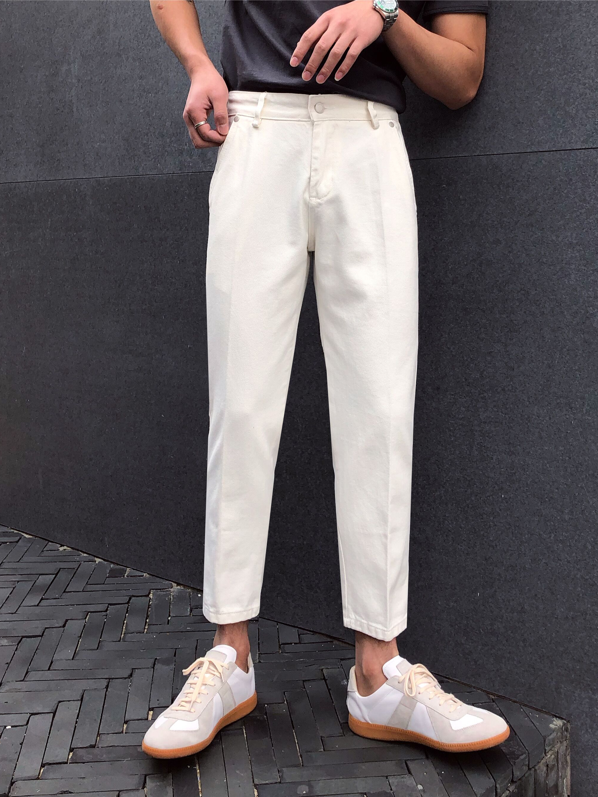 像卡其色、浅灰色和深蓝色这类饱和度低的冷色调能给人利落、干净的感觉。夏天或者秋天只要搭配一件衬衣就会显得很精神。想要休闲一点不那么正式的话,头戴一顶巴拿马草帽也是很不错的选择,休闲感十足,随时就能出门度假的感觉。 想要显得正式一点的话可以搭配皮鞋之类的,搭配运动鞋或者经典的小白鞋会更显休闲,轻松又随意。