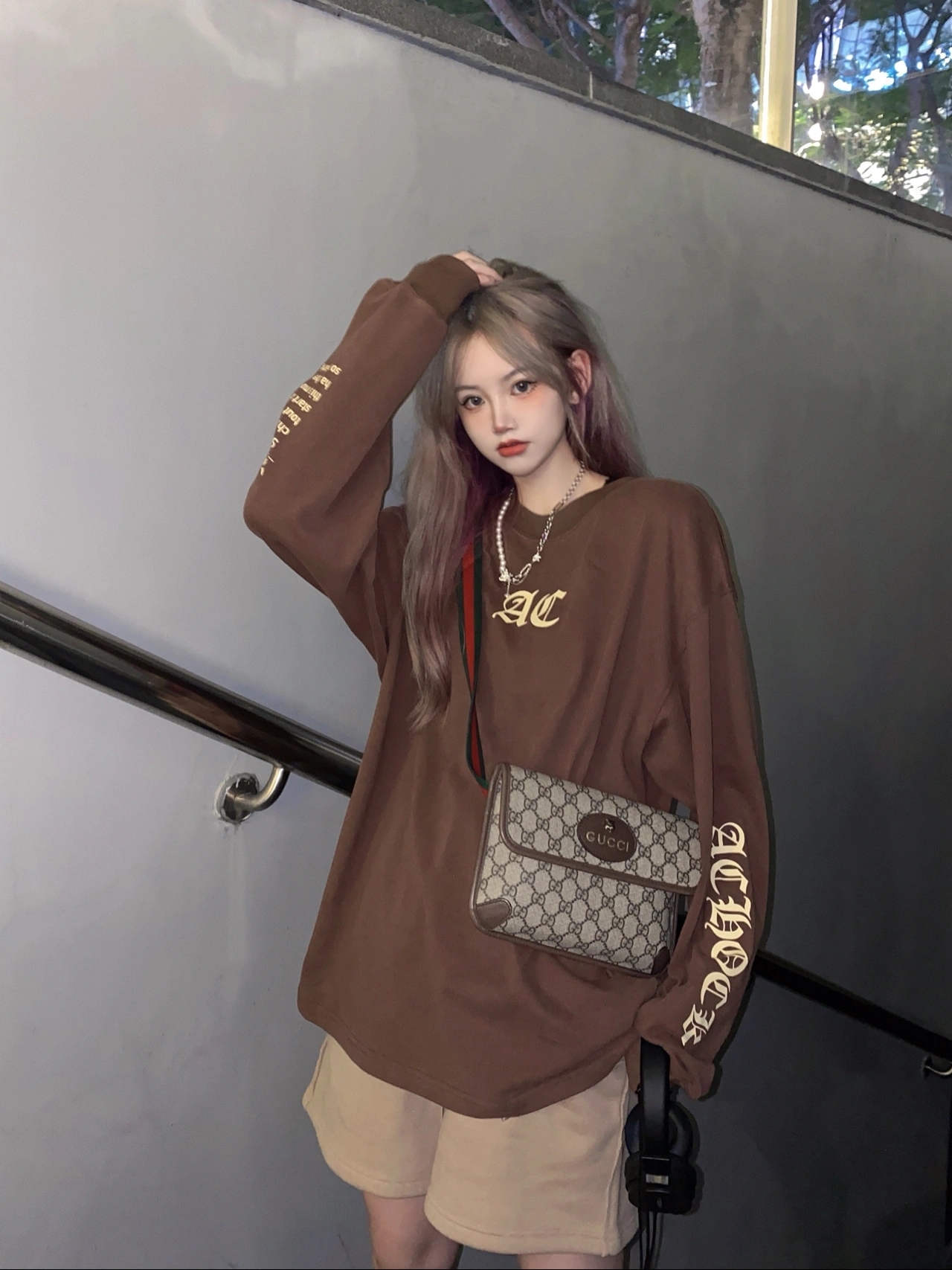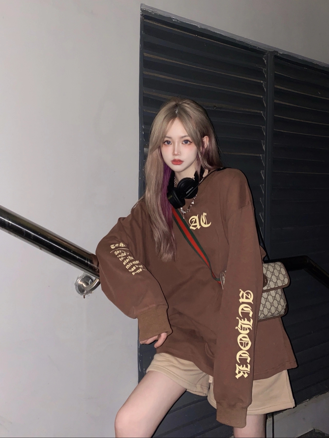 搭配的卫衣是Achock,裤子是FDR21,项链是OYANG,包是GUCCI。