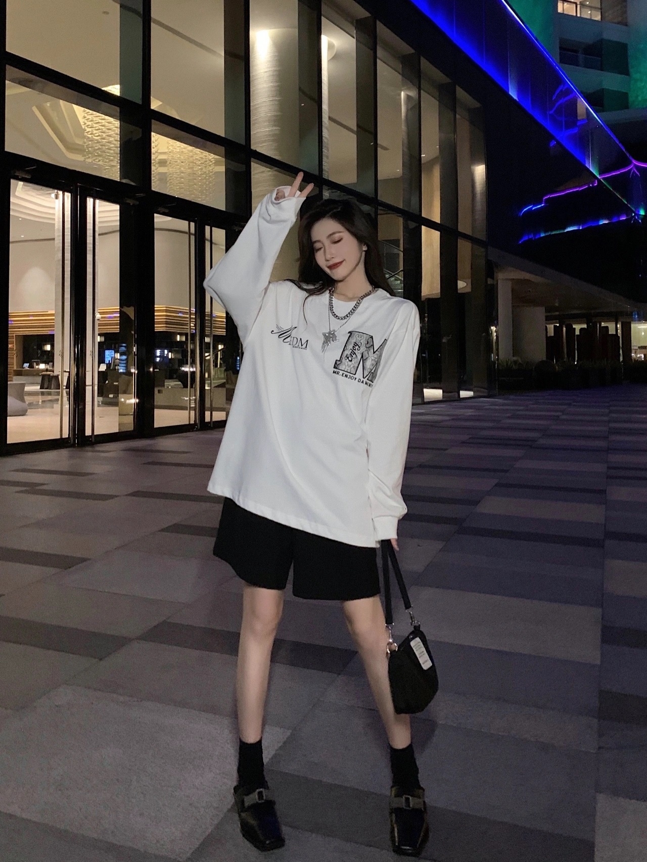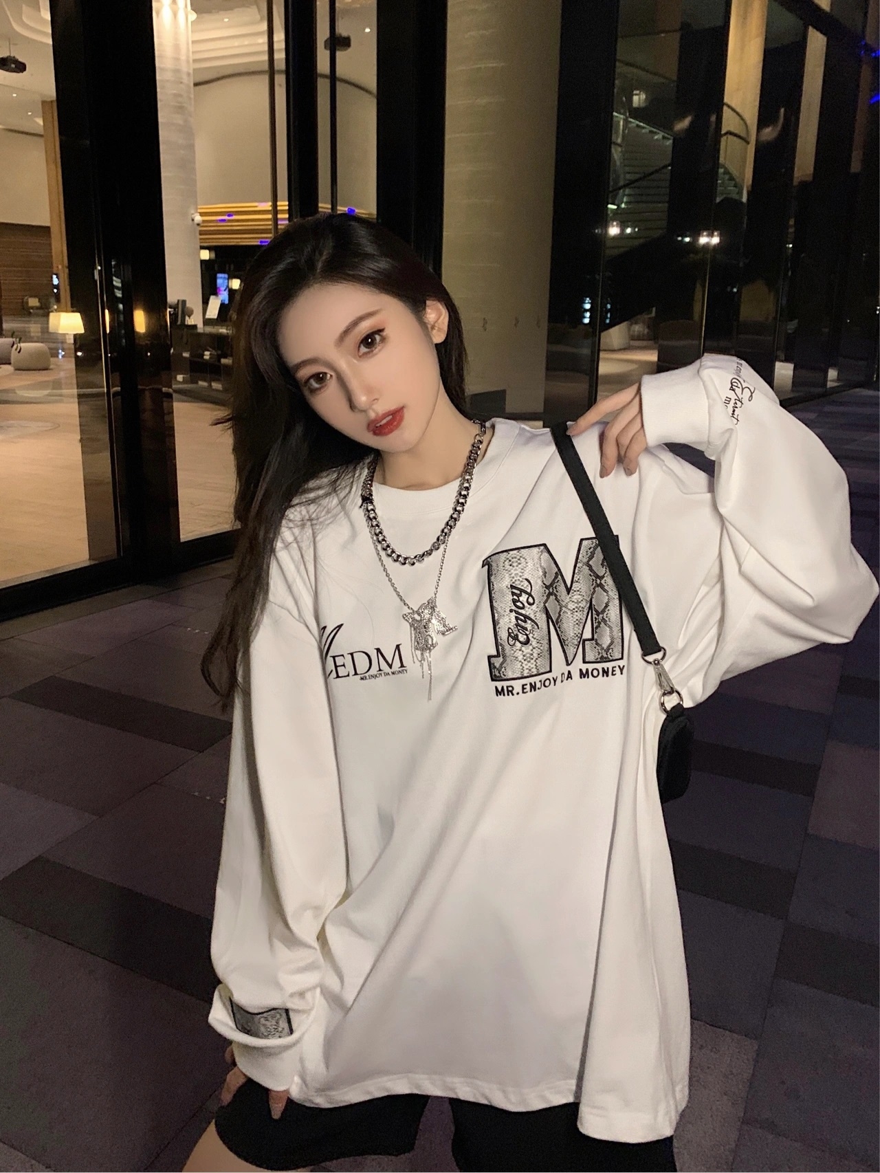 这款t恤是简约的风格,宽松的版型,时尚百搭,胸前的字母印花,很有个性,搭配牛仔裤或者短裤都很好看。