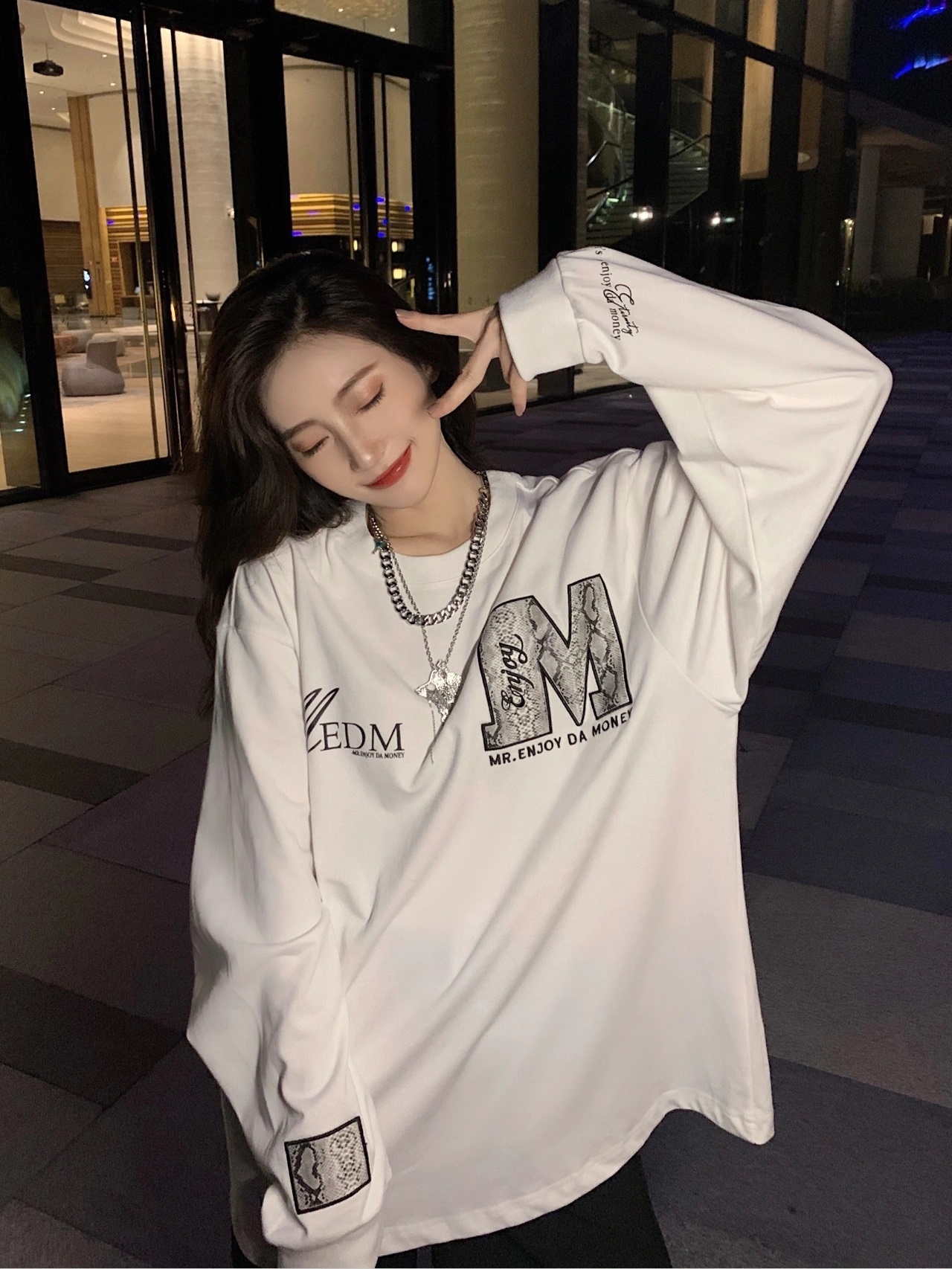 上身舒服,也不会很松散,可是外穿可以内搭,他家衣服回购好多次了。