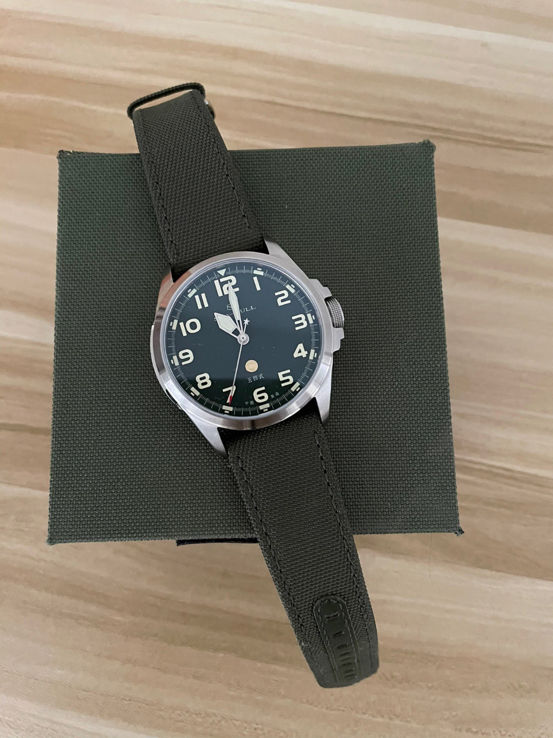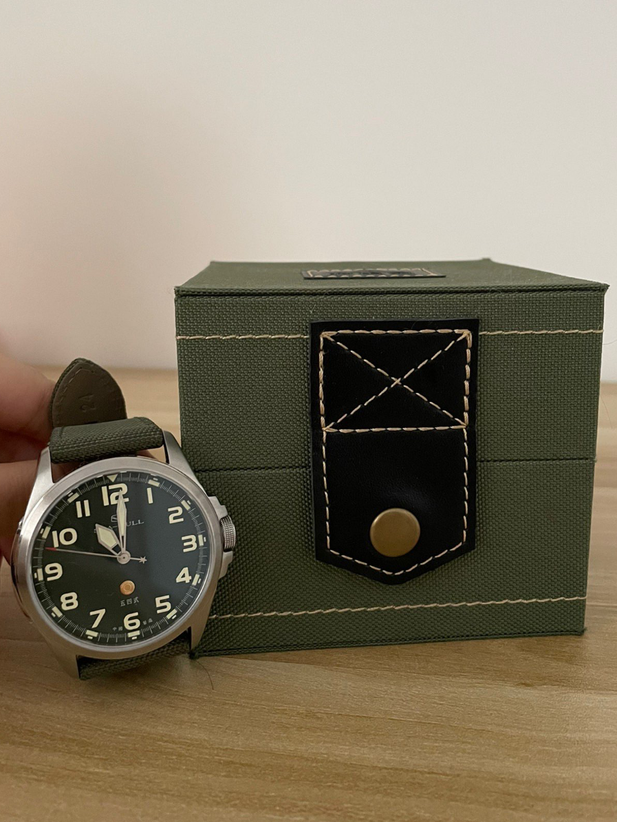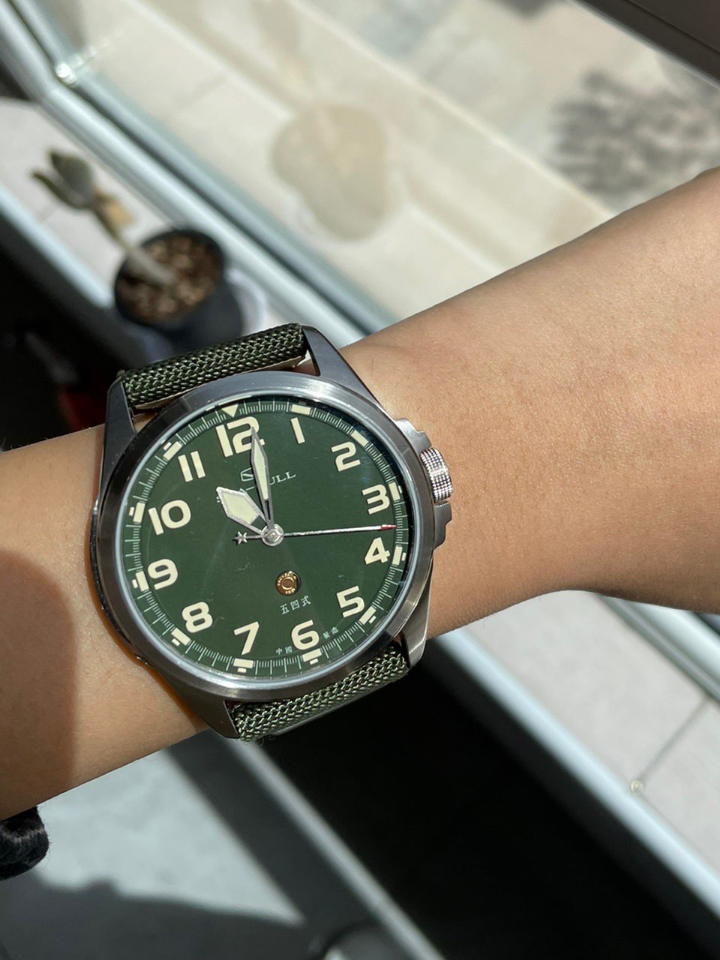 最近国货的风刮得特别大,我也来支持一下国货,我前段时间种草了Seagull家的这款机械男表,据说海鸥机芯是自主品牌最好, 我相中的是这块陆军一号绿盘。