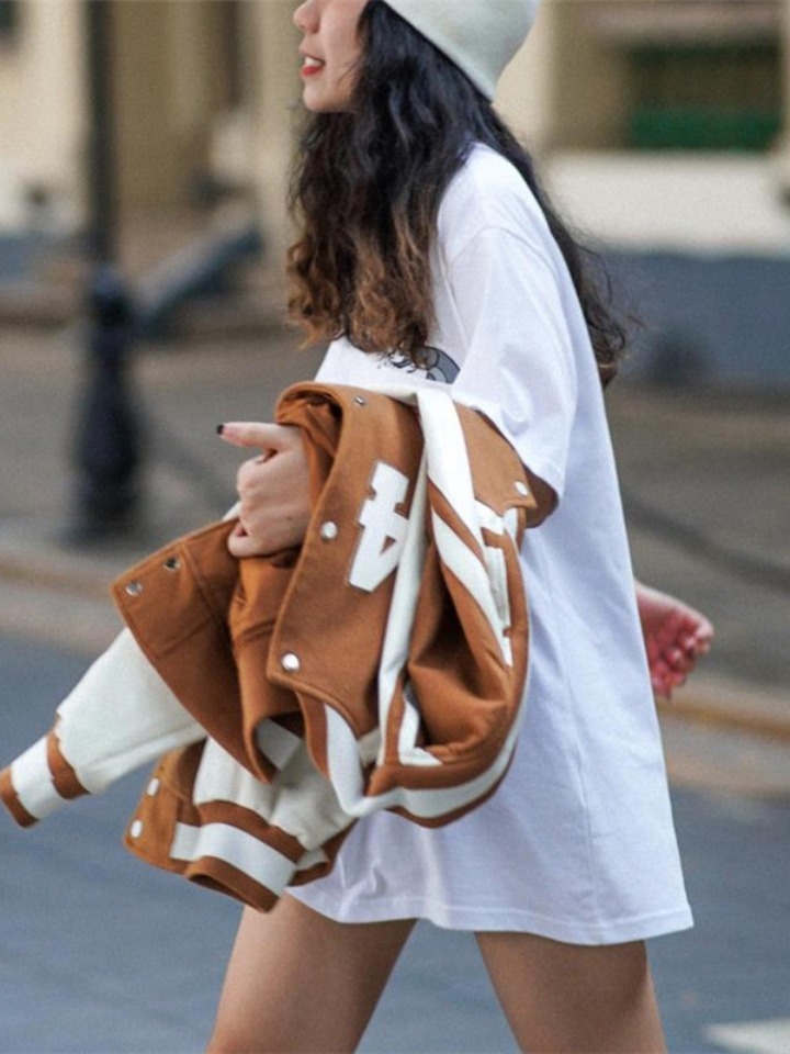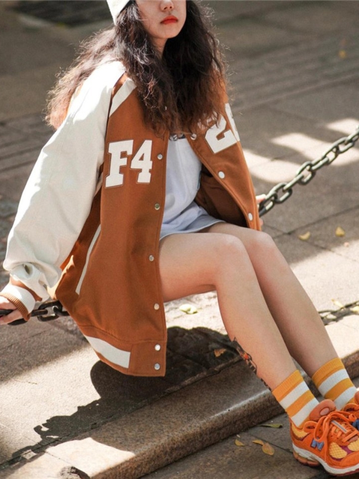 这款外套采用了棒球服的款式,带来了休闲运动的感觉。衣身采用了丰富的撞色拼接和字母LOGO设计,带来了街头嘻哈的风格,提升了整体的吸睛度。