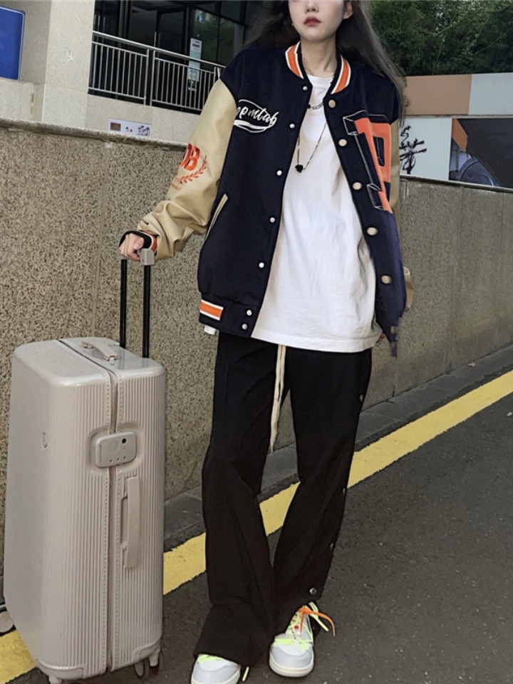 这款外套选用了经典的棒球夹克版型,宽松的剪裁,穿着舒适自在。柔软厚实的面料打造,经典的撞色拼接衣身,告别纯色的单调,更加凸显时尚感。两侧带有侧袋设计,提高实用性。
