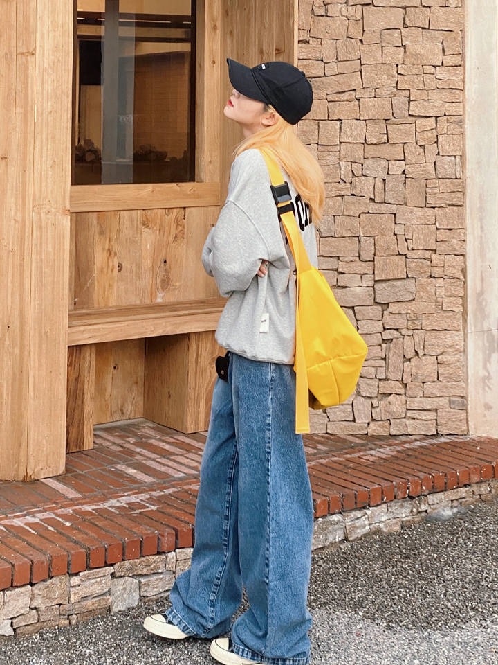 高腰设计,拉长身材比例。高腰牛仔裤,显瘦显腿长。直筒裤型,修饰腿部线条。