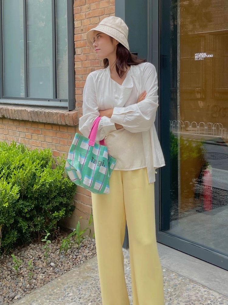 采用淡淡的白绿色调,结合格纹设计,诉说不尽的优雅浪漫情怀。手提处采用拼色处理,吸晴感十足,彰显出轻奢时尚的韵味。