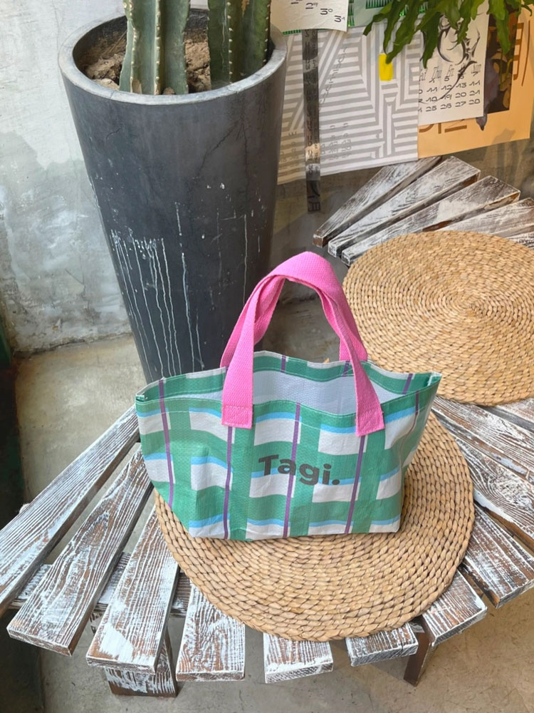 这款来自Tagi兜兜风彩色编织饭盒包袋,采用简单的改造之后就变成了一款精致的手袋。拼色的碎花设计,更具日系清新的甜美感。
