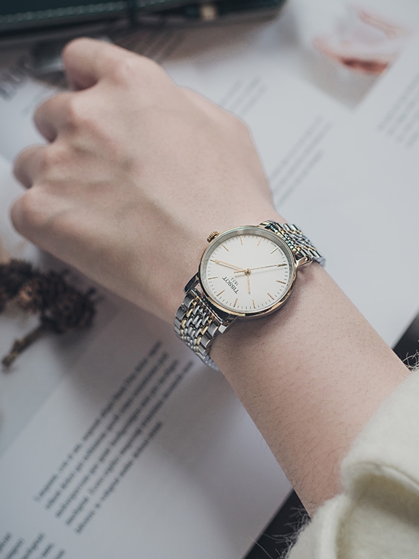 TISSOT瑞士石英手表,非常时髦的制表工艺中点缀了恰当的怀旧元素,复古的表盘元素,被经典的设计细节和微妙的复古装饰都平衡,配上充满魅力的表盘设计体现了腕表流畅且低调的风格。