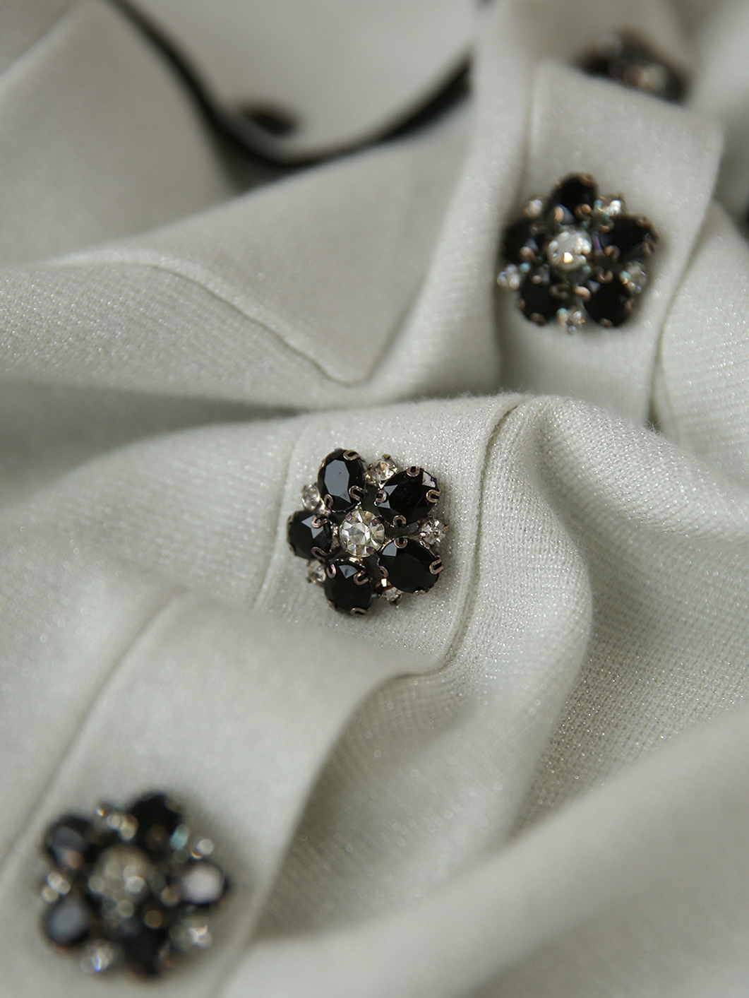 整排的珠光五爪扣巧妙点缀门襟,JI具文艺复兴时期的繁琐风貌;别出心裁的后腰攀设计,左右对称,具有可调节的功能。