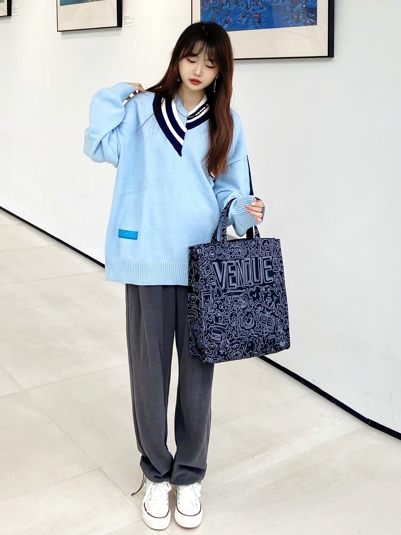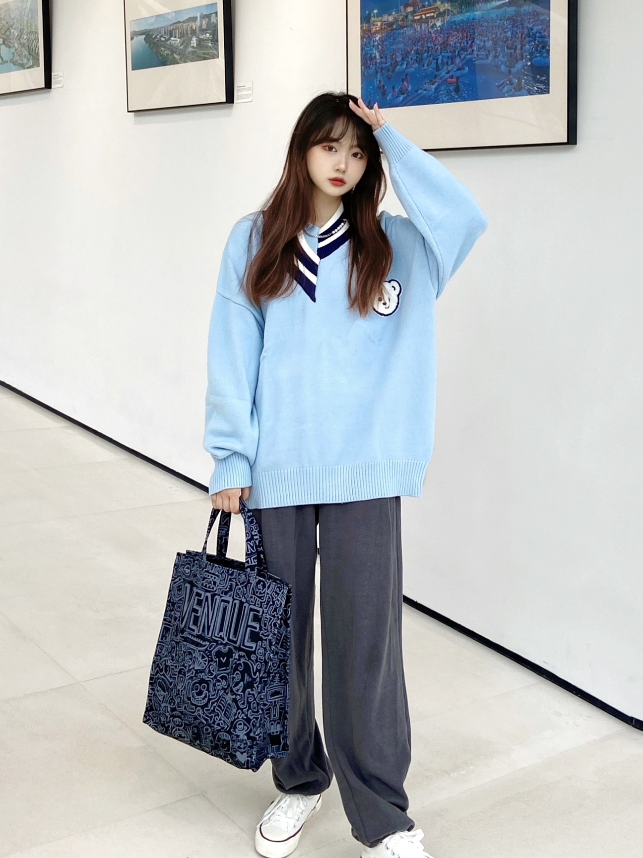 经典v领可以适合任何脸型的美眉穿着,宽松简洁的廓形,穿起来倍显随性时髦,前后不对称的样式,显瘦又个性,针织质地,保暖舒适,搭配阔腿裤或者半身裙,时尚优雅!