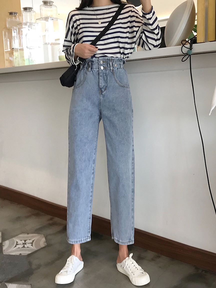 直筒利落的版型,配合着高腰裤头设计,优化身材比例,悄无声息地遮掩住腿部不完美的缺点,呈现出率性利落的穿搭态度。清爽的浅色系来袭,干净又利落,轻松驾驭任何风格的服装。