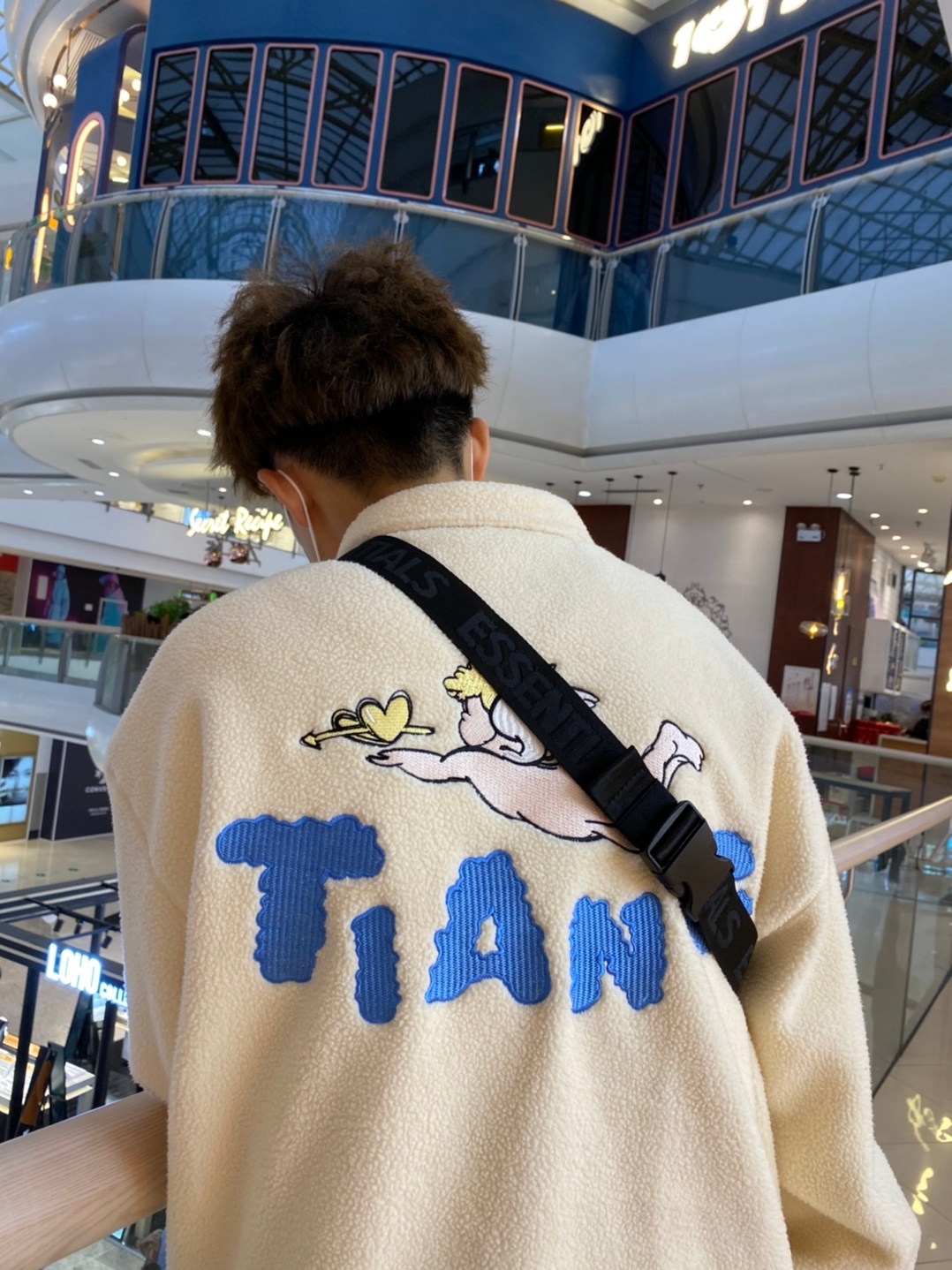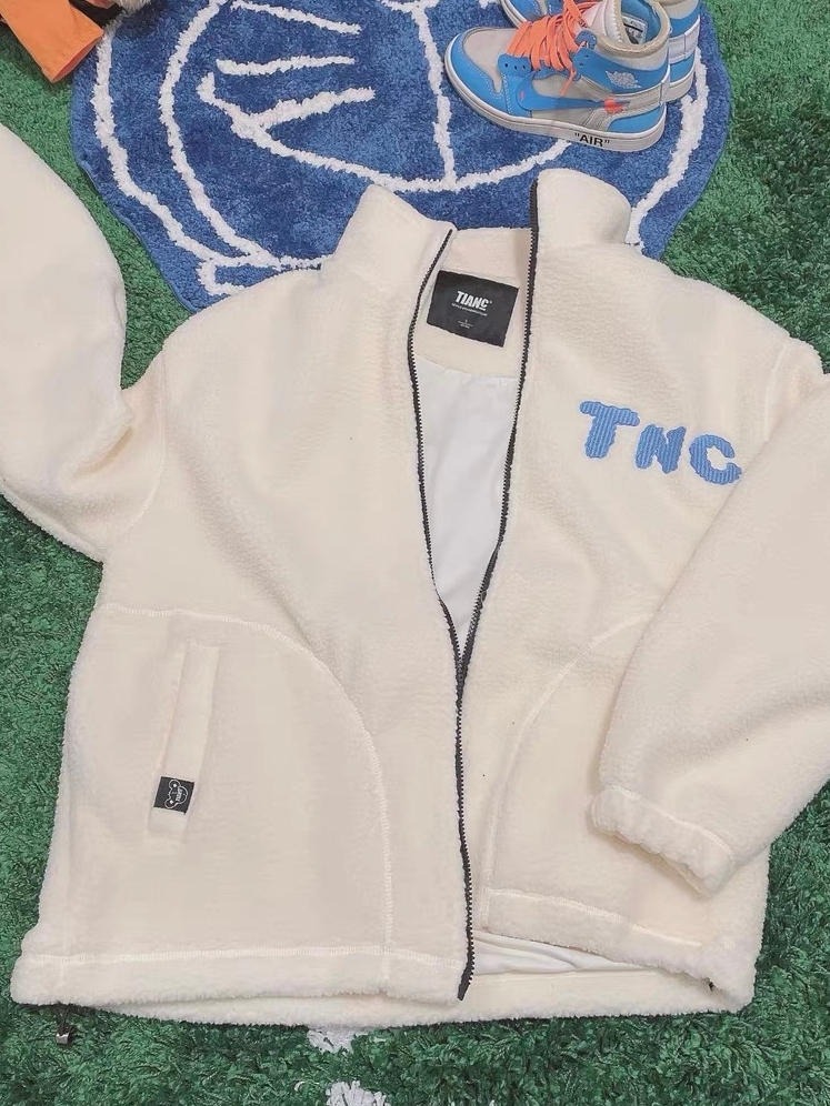 此款由潮牌Yeast California与 Sence LA联手打造的外套,选用羊羔绒材质制作;服装更具MA-1款式为基础,极具休闲气息。