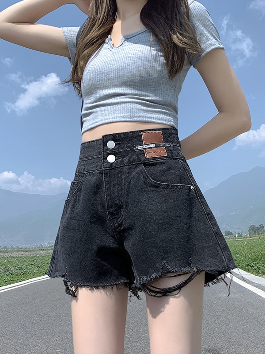 高腰设计,拉长身材比例。高腰牛仔裤,显瘦显腿长。直筒裤型,修饰腿部线条。