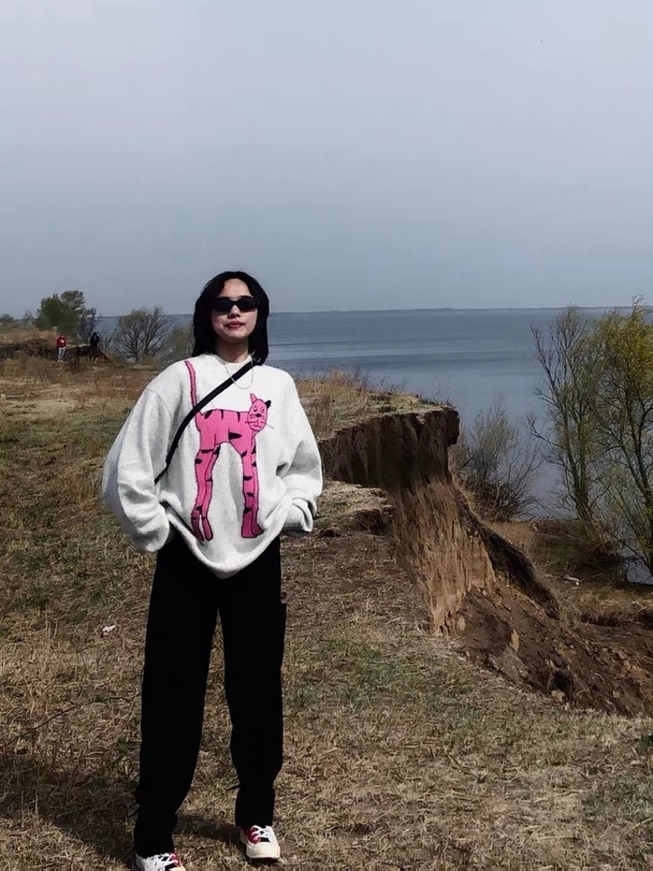 随意简单的打底衫非常的随意不受限制,两边吊脚中间短款的设计,袖子设计稍稍有点长,这样的设计可以让手臂显得有点长。