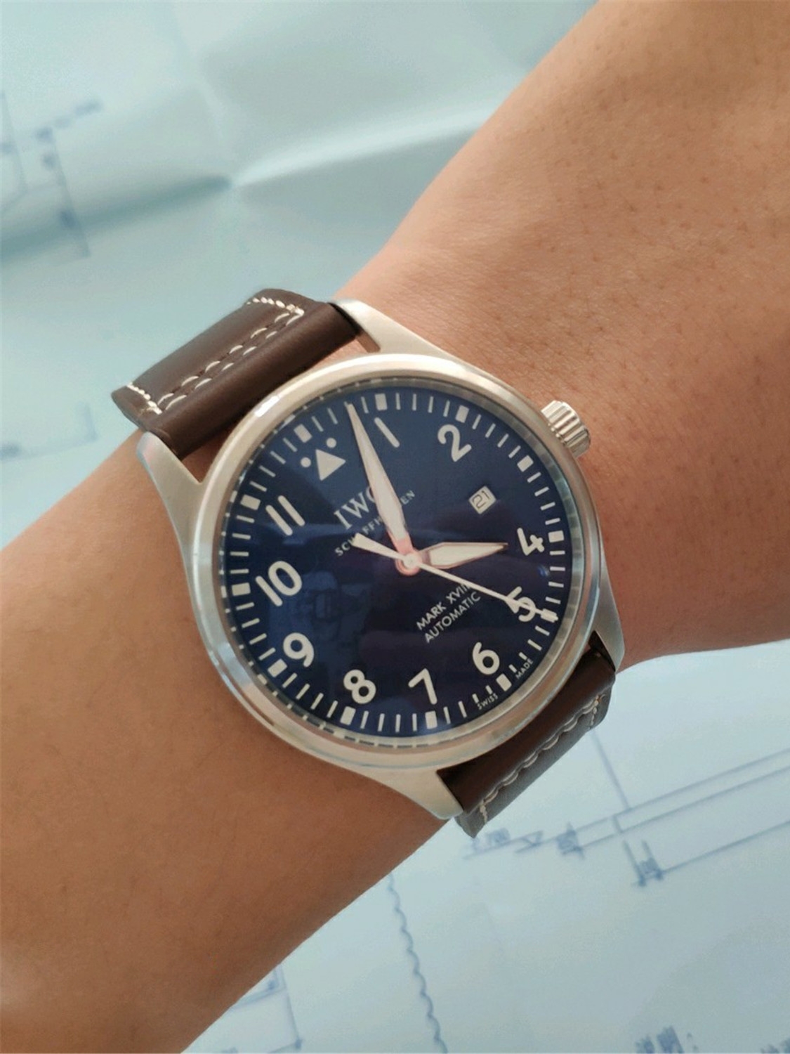 IWC万国表飞行员系列IW327010腕表,这枚腕表也是搭载自动机械机芯,表壳为精钢材质,具有日期显示功能,表径40毫米,防水60米。