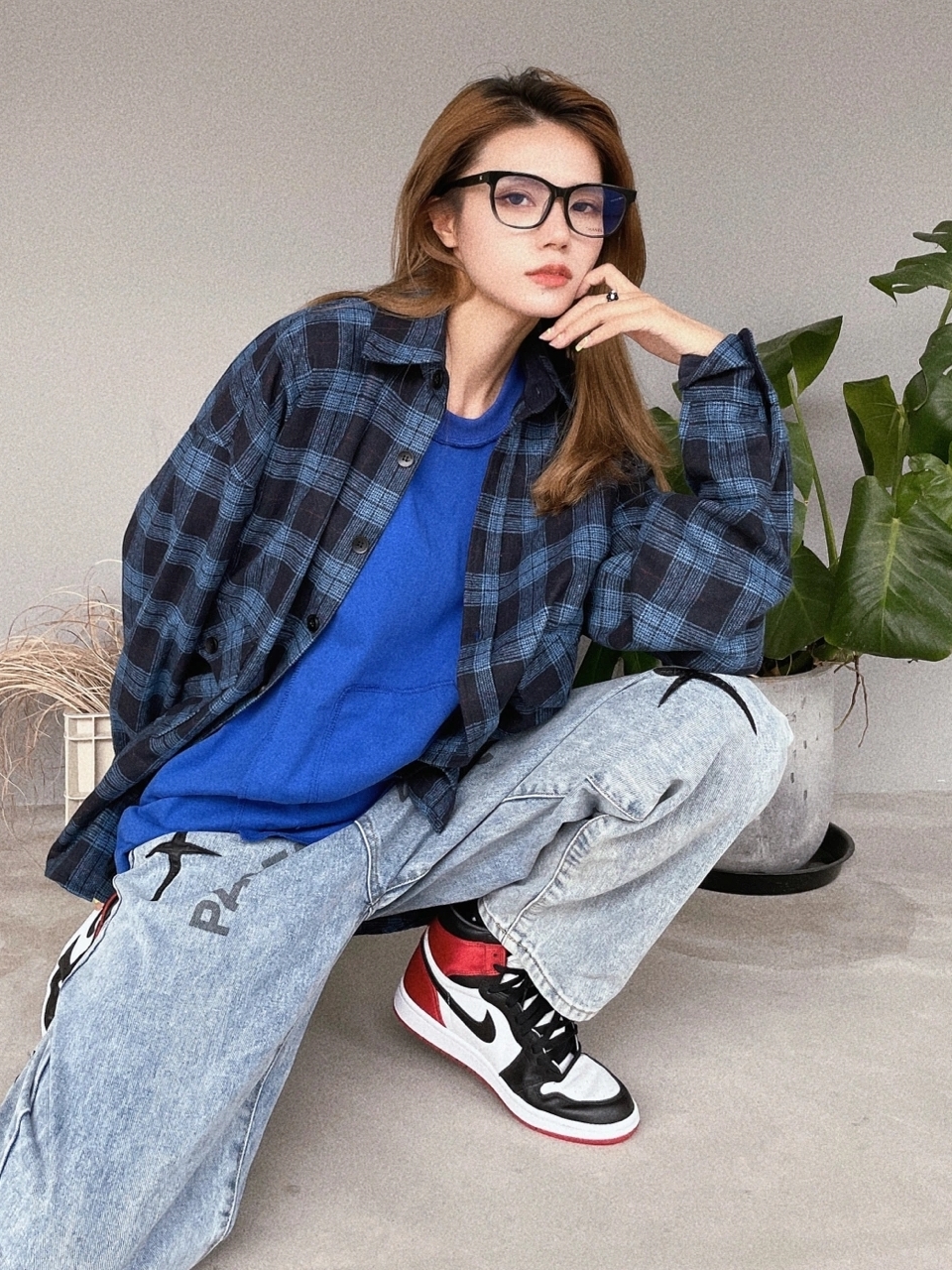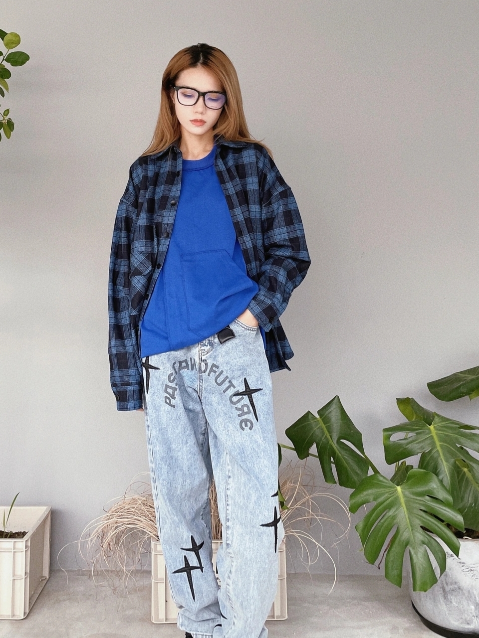 宽松的格子衬衫帅气十足,不易过时,内搭卫衣或针织衫都显得活力满满,保暖有型,单穿或外搭外套也是暗黑感十足,易于搭配。