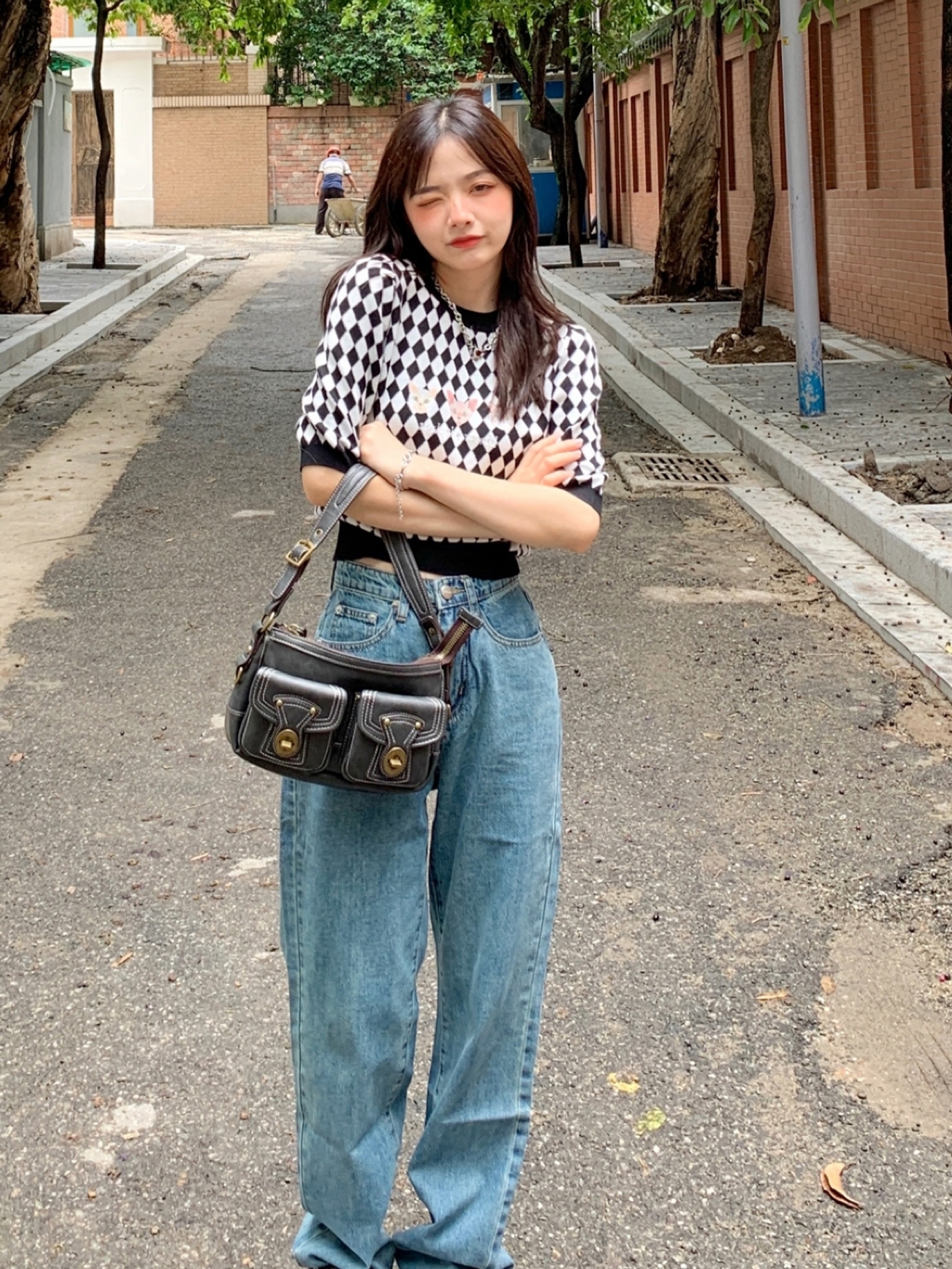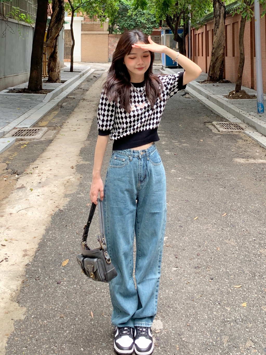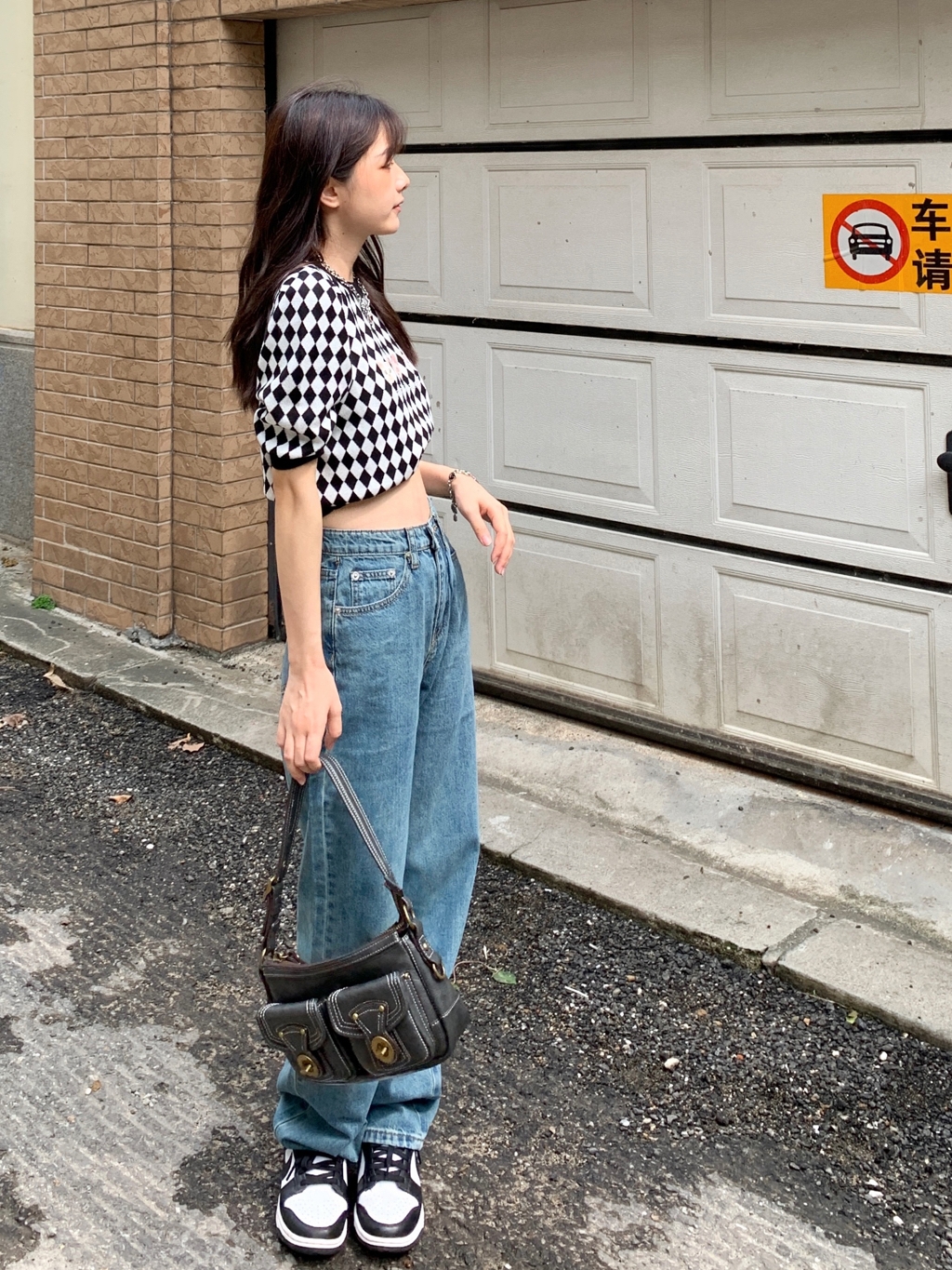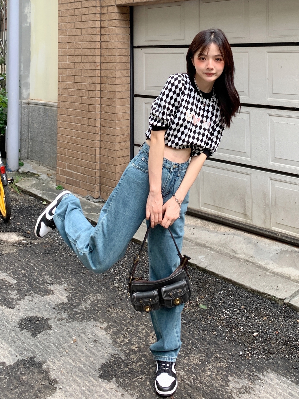 这款牛仔裤的设计很有特色,高腰的版型,很好的修饰了身材比例,显瘦效果很棒,搭配一件T恤,就能轻松穿出时尚感。