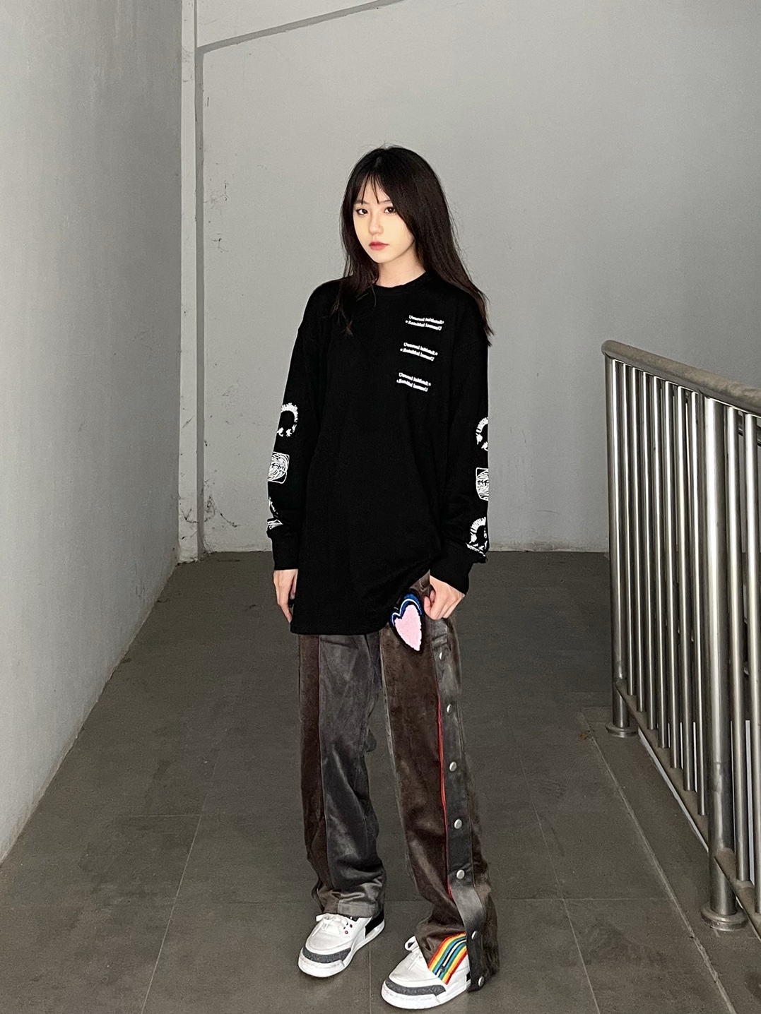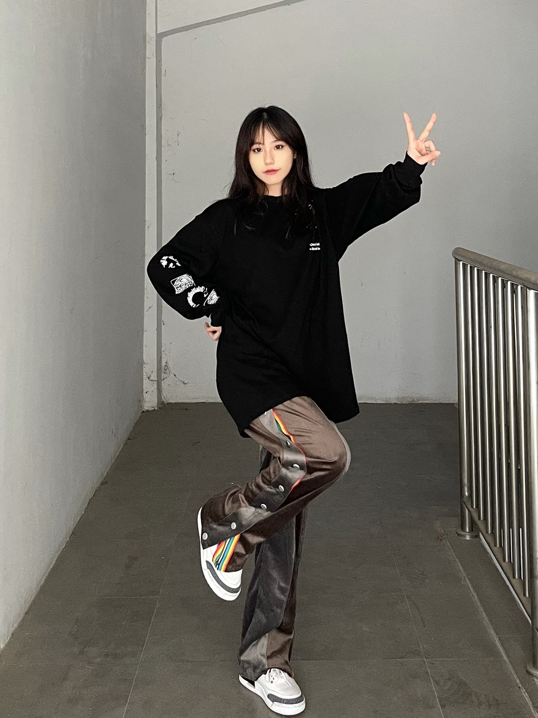 丝绒今年有多火相信已经不用我说了吧,这款不止有火爆的丝绒元素还有回潮的运动风元素。阔腿的版型衬得人又高又瘦,华丽的黑色丝绒,很亲肤,还无敌显气质的。裤子侧边的彩色条纹有一股复古的味道,松紧腰的设计方便穿脱、有点小肚子的妹纸也不用担心,松紧腰完全不勒肉、属于你不入手会后悔的一款哦!