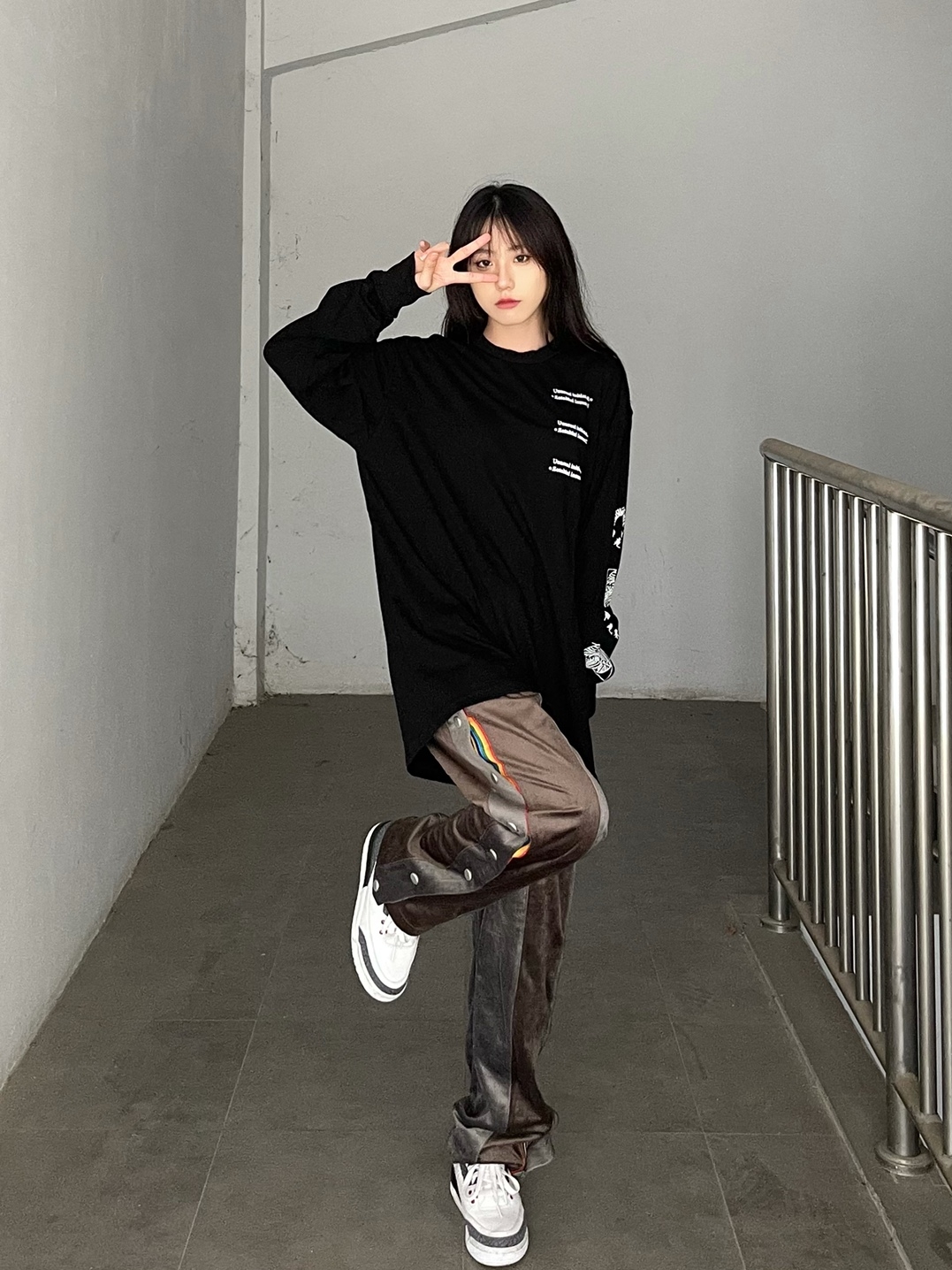 运动风盛行的当下,一双小白鞋红遍了全球,如今时尚潮咖们又将目光转移到了学生校服常见的侧边竖条拼接的运动裤。这款松紧腰头直筒运动长裤,两侧边拼接手感细腻的丝绒面料提升整体档次,同时显瘦还拉伸腿部线条,上身效果舒适大方。